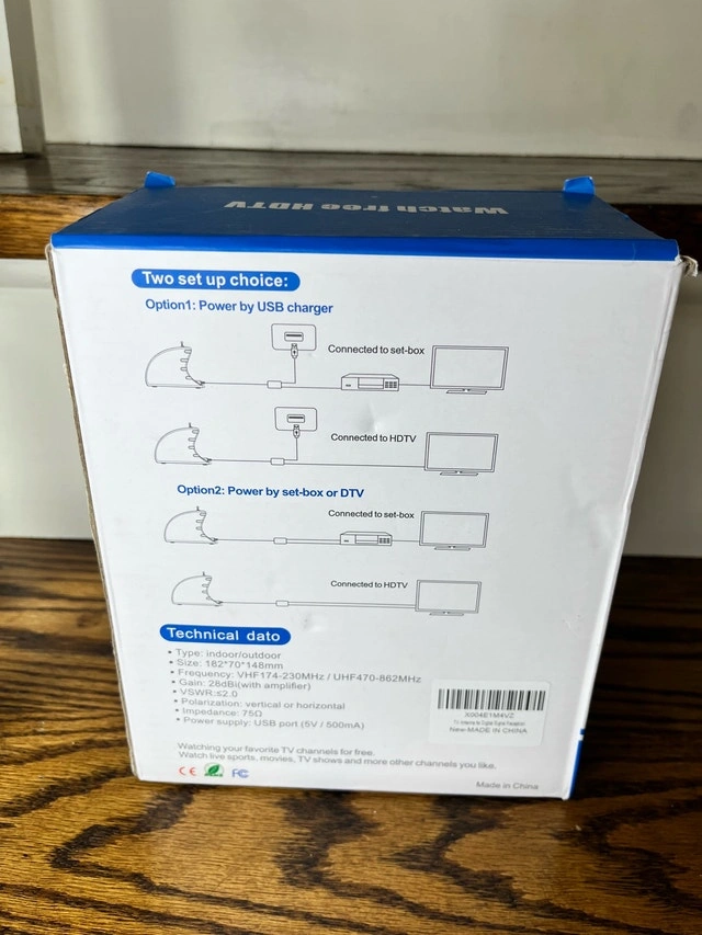 Watch Free HDTV Indoor Digital TV Antenna, specialized for HD digital systems. Watch your favourite TV channels for free. It comes with two setup options, powered by USB charger or set-top box. Specifications:
