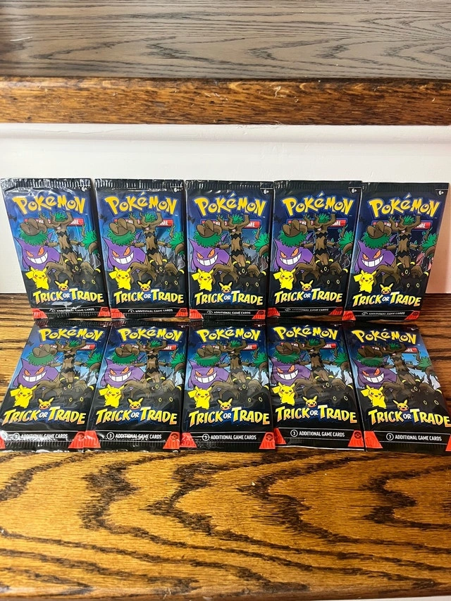Get ready for a spooky surprise! I have brand new, sealed 2023 Pokemon Trick or Trade mini packs, each containing three cards, perfect for Halloween treats or trading fun. These packs are ideal for both collectors and kids who love the thrill of discovering new Pokemon. Each pack comes with ghoulish characters like Gengar, Pikachu, Trevenant and Umbreon! * Officially licensed Pokémon TCG product. * Each pack contains 3 cards. * Features Halloween-themed Pokémon. * Ideal for trick-or-treating or party favours. 10 packs for 10 dollars Check out my other listings for more cool stuff!