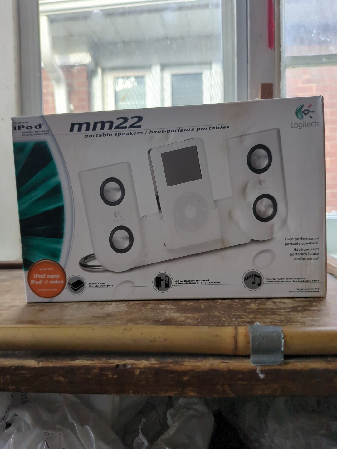 Selling a set of Logitech mm22 portable speakers! These are compatible with iPods and other MP3 players. They can be powered by AC or batteries, and come with a travel case. Perfect for high-performance portable sound!