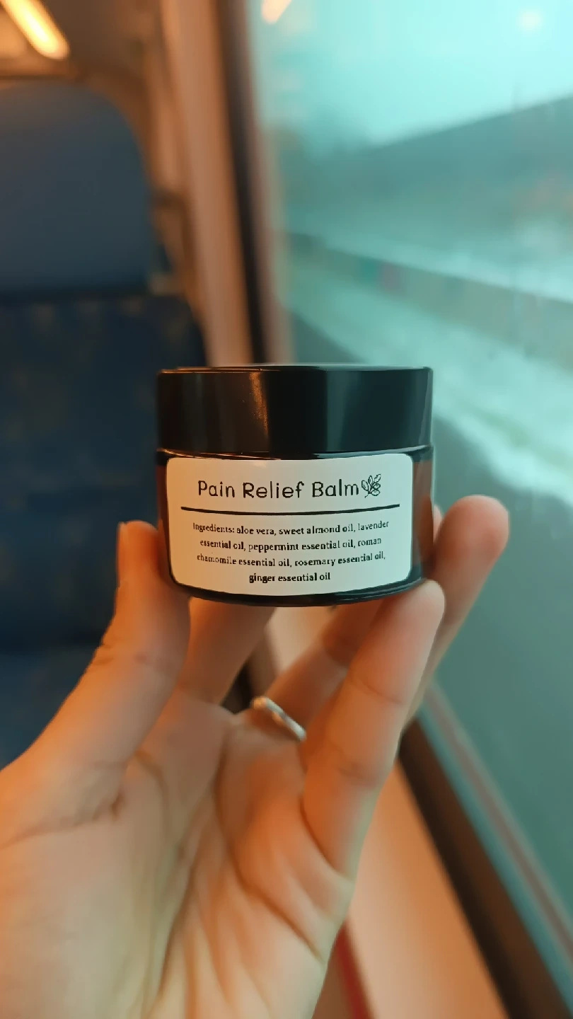Handcrafted Pain Relief Balm - 30ml. Can be used topically to help relieve muscular aches and pains or it can be massaged on tummy to relieve digestive issues.