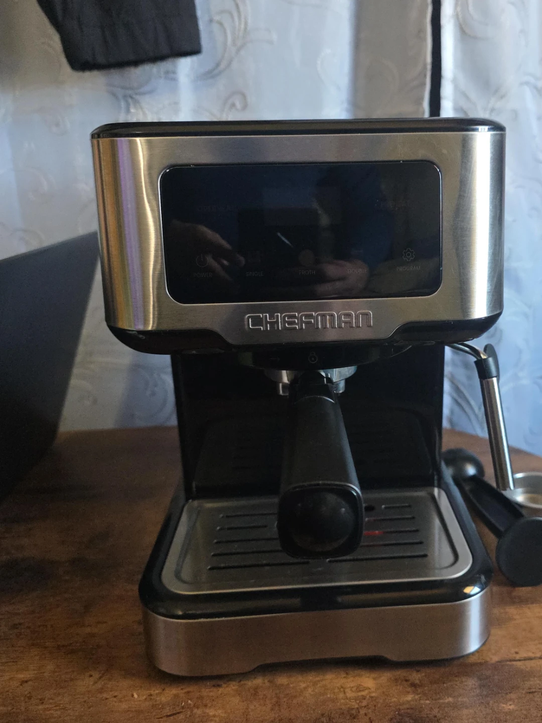 I'm selling a Chefman espresso machine! It's in great condition and ready to make some delicious espresso. It comes with all the accessories you see in the pictures
