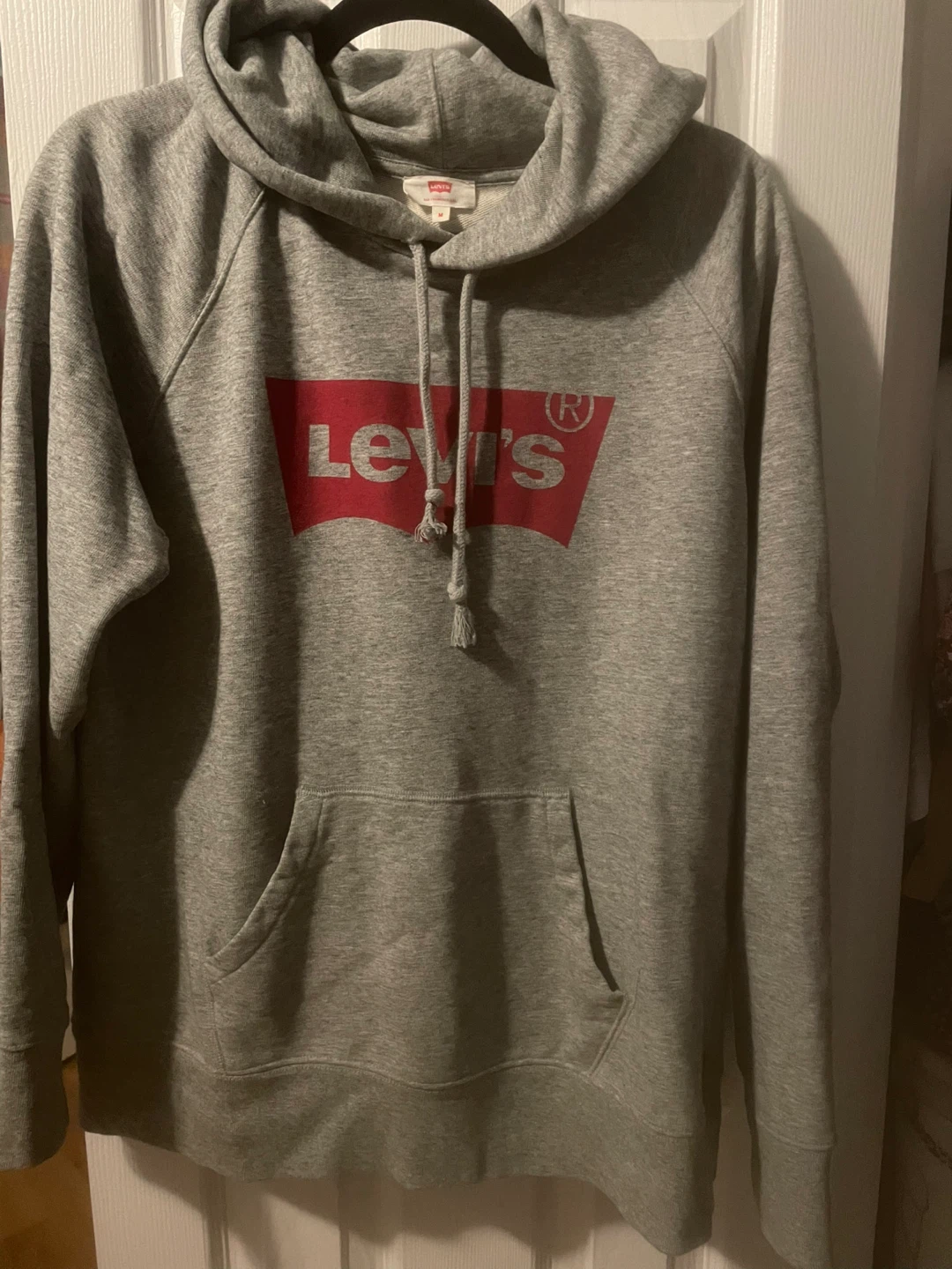 Selling a Levi's hoodie in grey. It's a size medium and in great condition! Perfect for layering or wearing on its own.