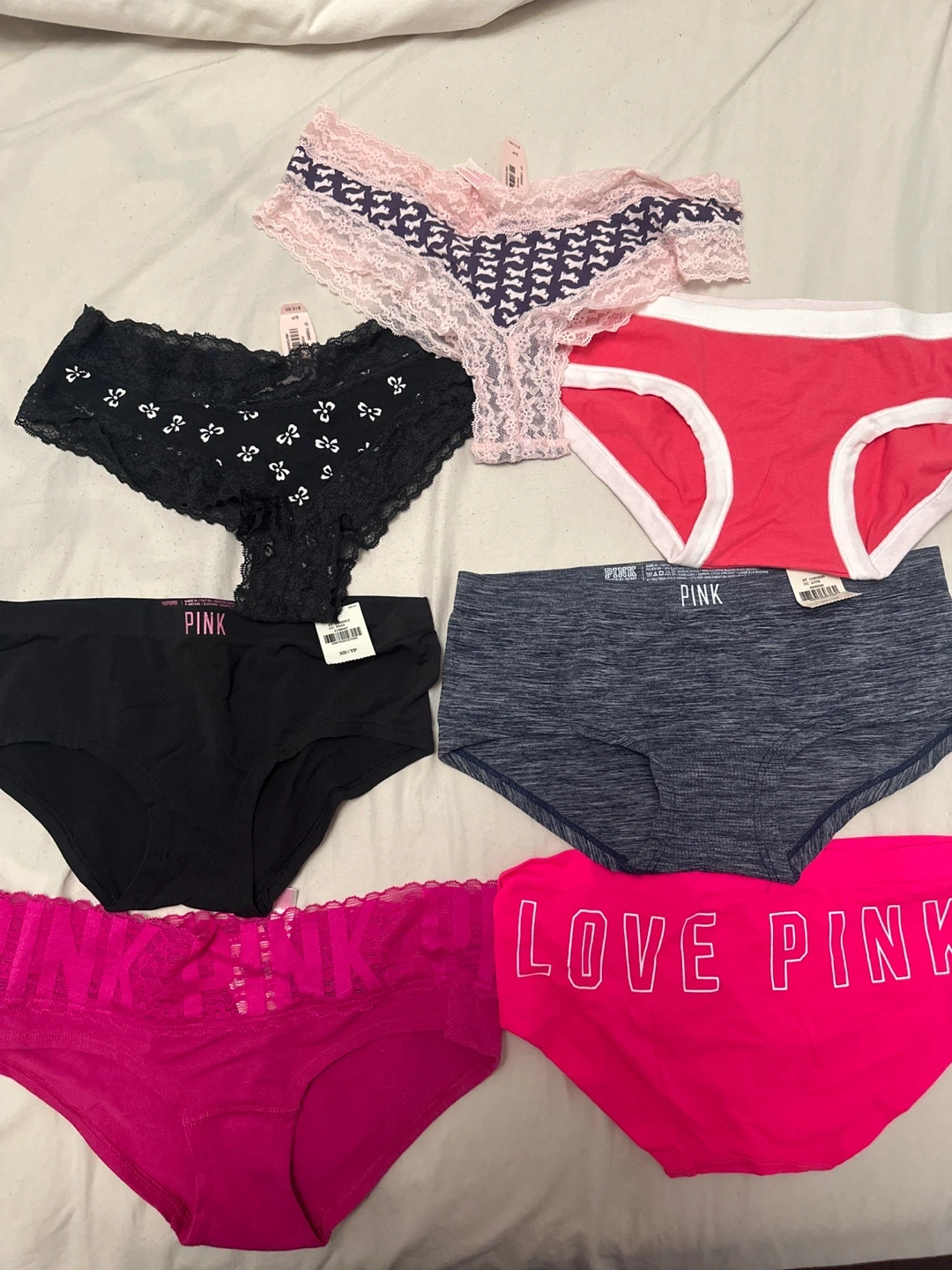 Selling a collection of Victoria's Secret PINK panties! There's a variety of styles and colours to choose from, including lace and solid options. Perfect for adding some fun to your wardrobe!