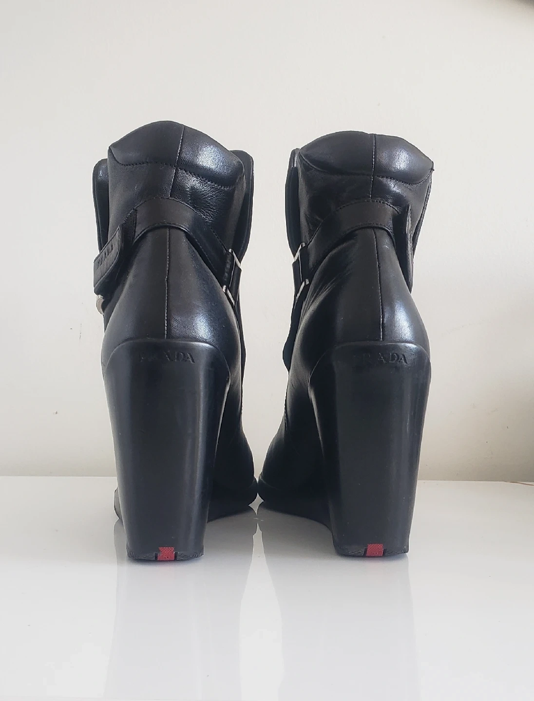 Buy & SellPrada Black Leather Wedge Boots Sz 38Prada Black Leather Wedge Boots Sz 38$390EUC. Fit like an 8. MSRP $2400. Pick up, cash only. Happy to discuss a bundle discount. ConditionLike newSize380 chats·0 favorites·15 viewsSELLERAnnCorso Italia64465 reviewsWHERE TO MEET1347 St Clair Ave W