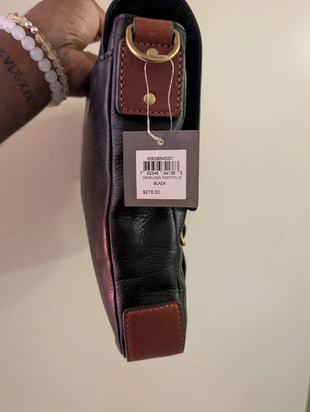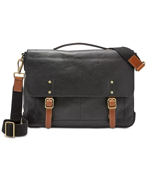 A classic look in lasting leather, Fossil's Defender briefcase is updated with modern amenities such as laptop and media pockets. The flap closure features slip pockets underneath for quick access to essentials.