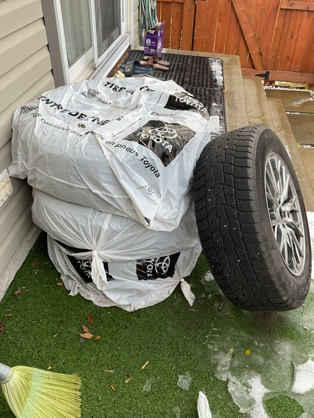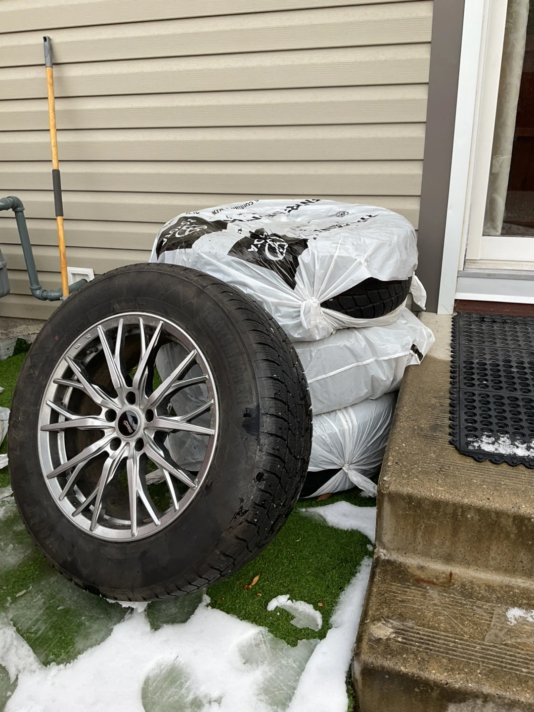 Price is negotiable,only used for 1 winter, the sipes are high enough to withstand the build up snow, it comes with 4sets of 18” tire, solid silver rims and TPMS sensor, a lug nut plus a free torque wrench,come see first; tire size 235/65 R18