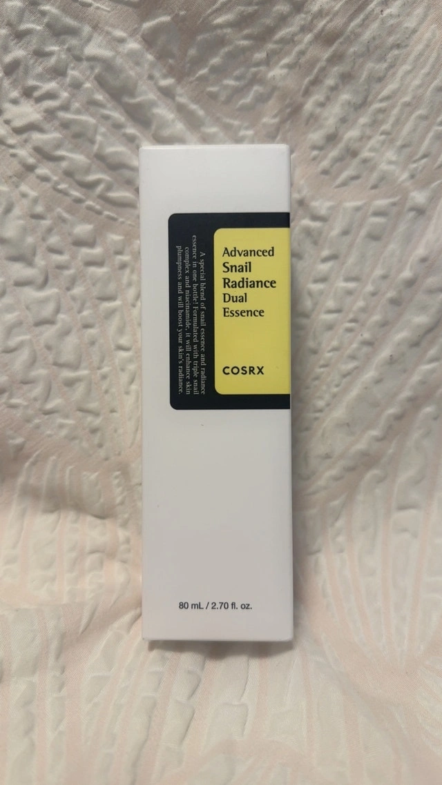 This is a Cosrx Advanced Snail Radiance Dual Essence, 80 ml/2.70 fl. oz. bottle. It is brand new in the box. - Contains 74.3% Triple Snail Complex - Lightweight texture - Boosts radiance The original price for this product is about $32 CAD (without tax). Get your glow on!