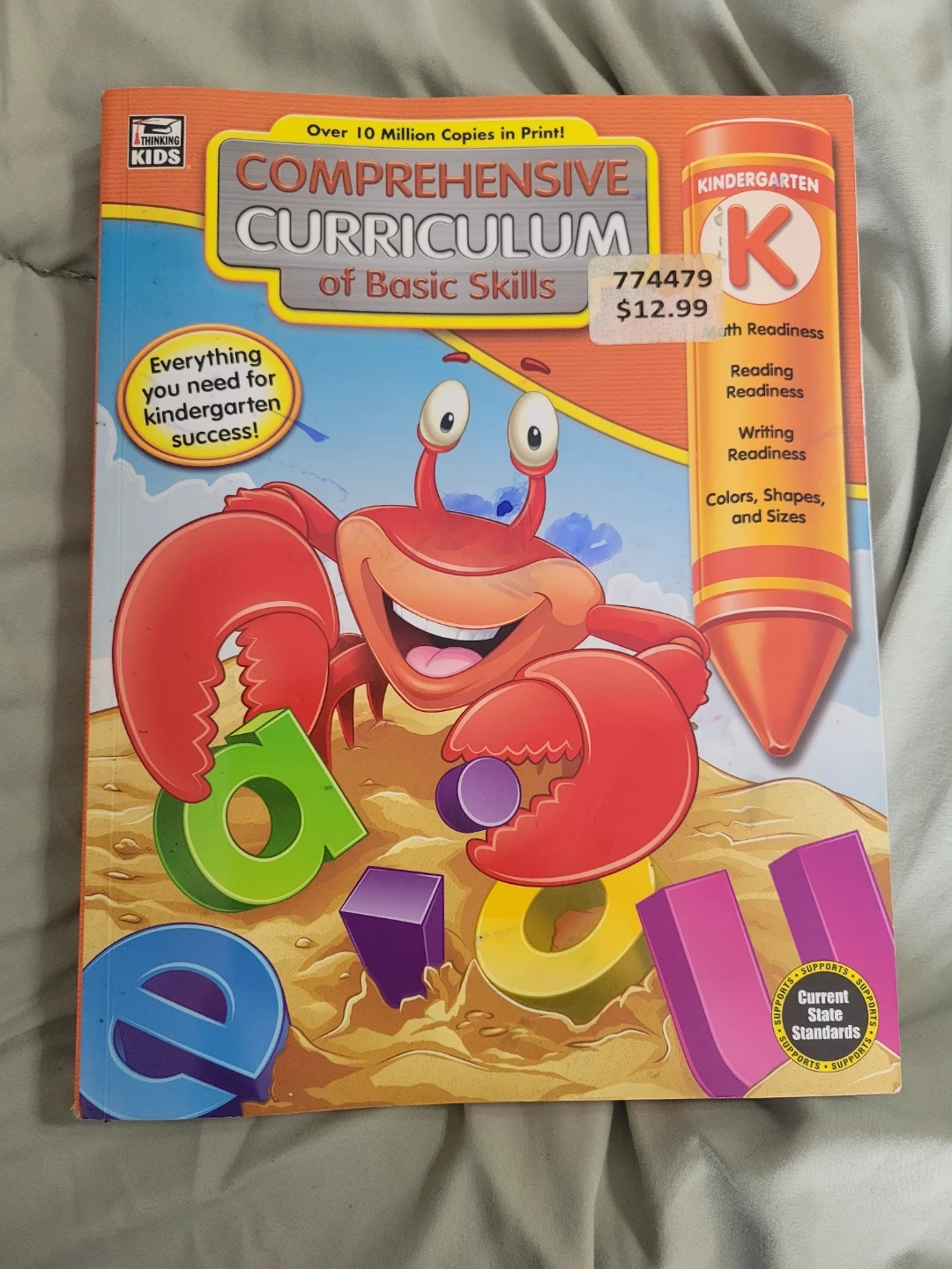 Comprehensive Curriculum of Basic Skills for Kindergarten. Everything you need for kindergarten success! Includes Reading Readiness, Writing Readiness, Colors, Shapes, and Sizes. Used only few pages