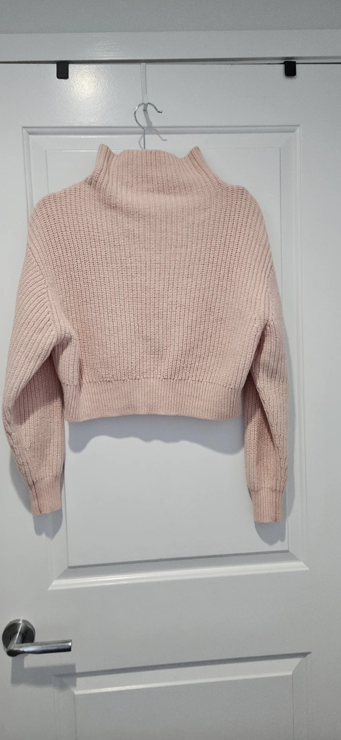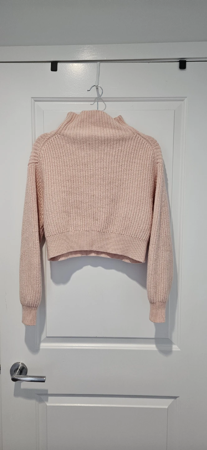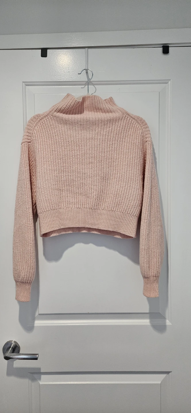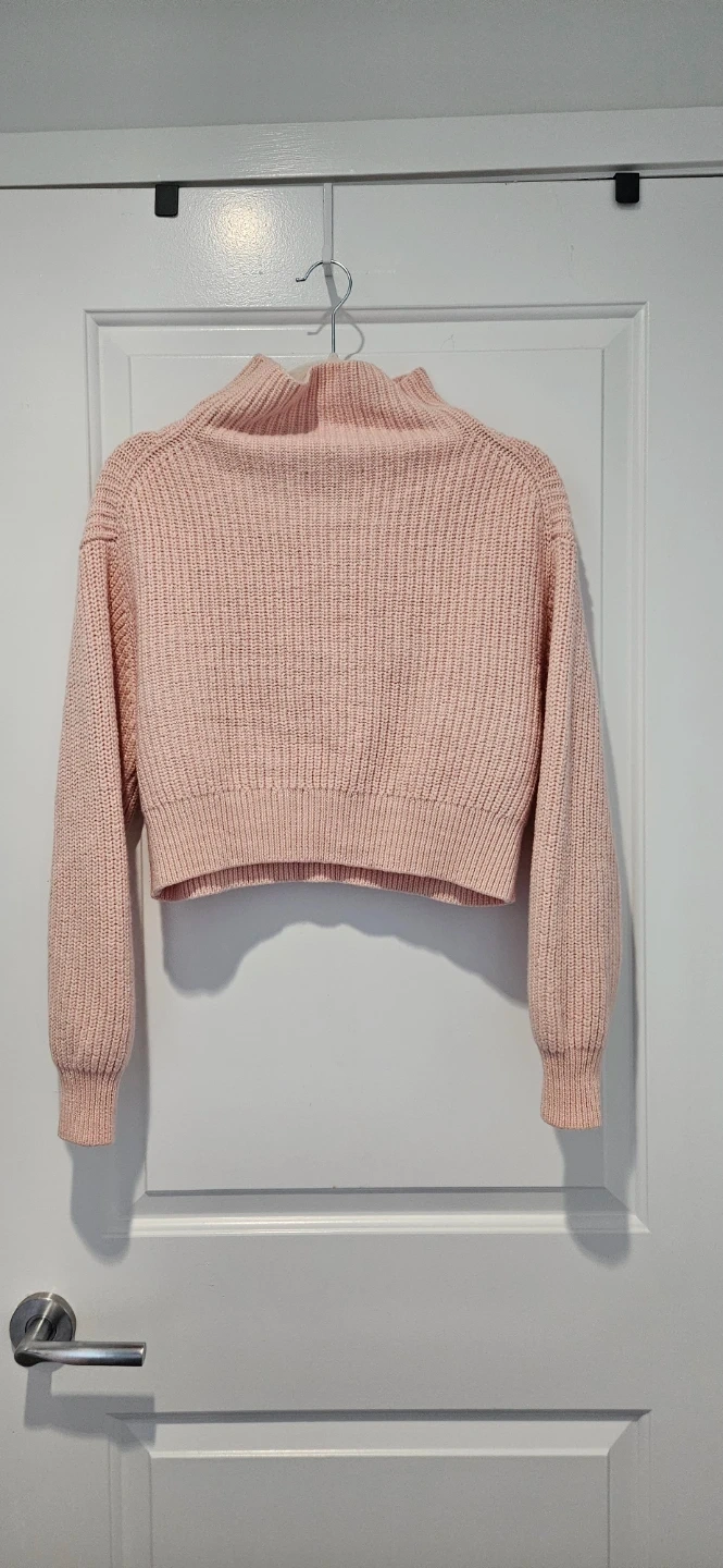 Cozy up in this cute Aritzia Wilfred mock neck sweater! It's a lovely light pink colour and pretty much brand new. 100% Merino Wool. The size is Medium. Perfect for layering or wearing on its own!