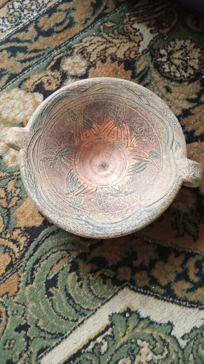 Selling a unique handled clay bowl with a lovely design! It's in good condition and would make a great addition to any home. Perfect for displaying fruit or as a decorative piece