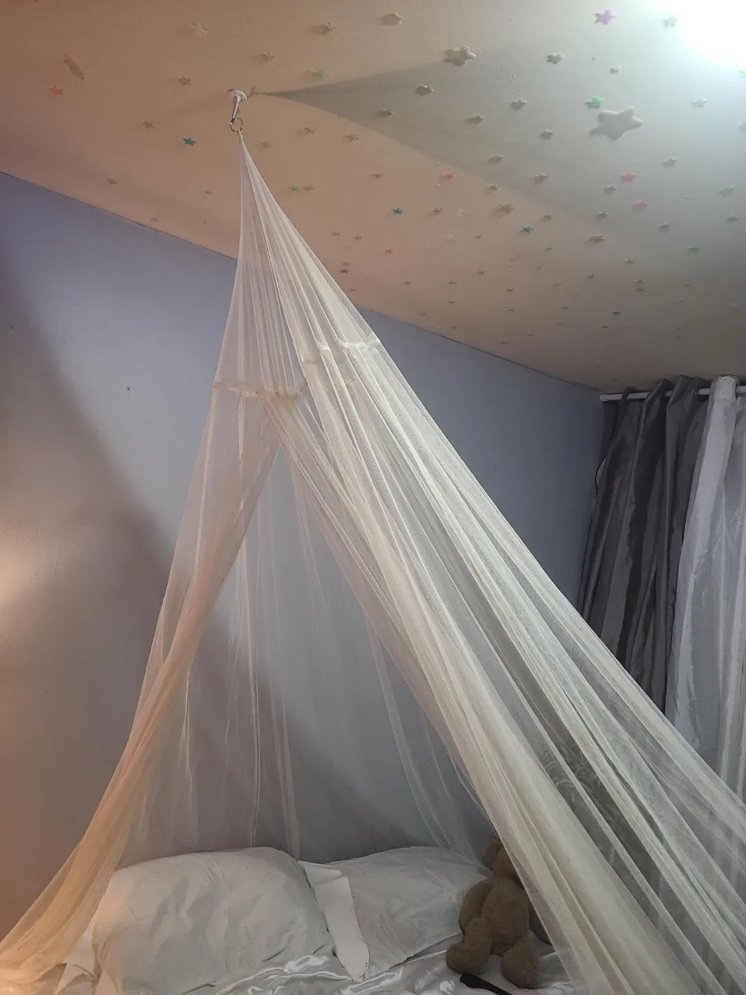 Add a touch of elegance to your bedroom with this beautiful white bed canopy netting! It's in great condition and ready to transform your sleeping space into a cozy retreat
