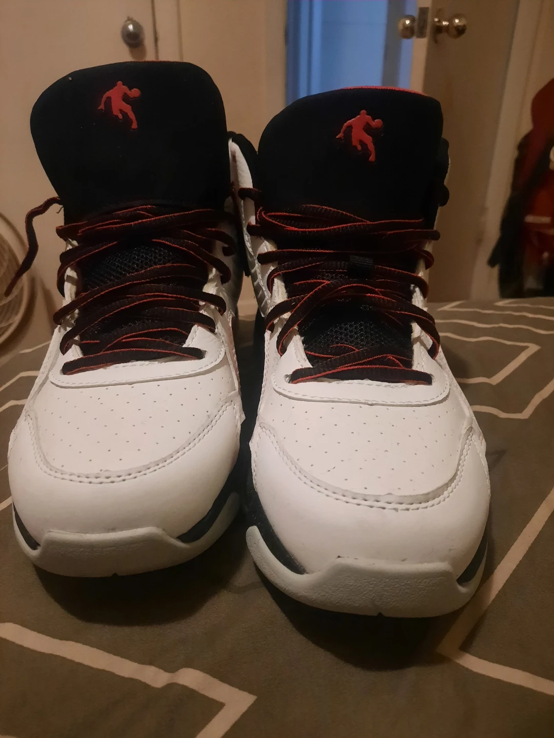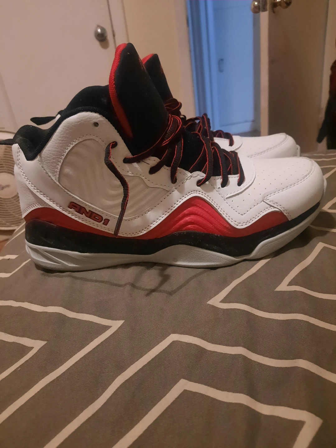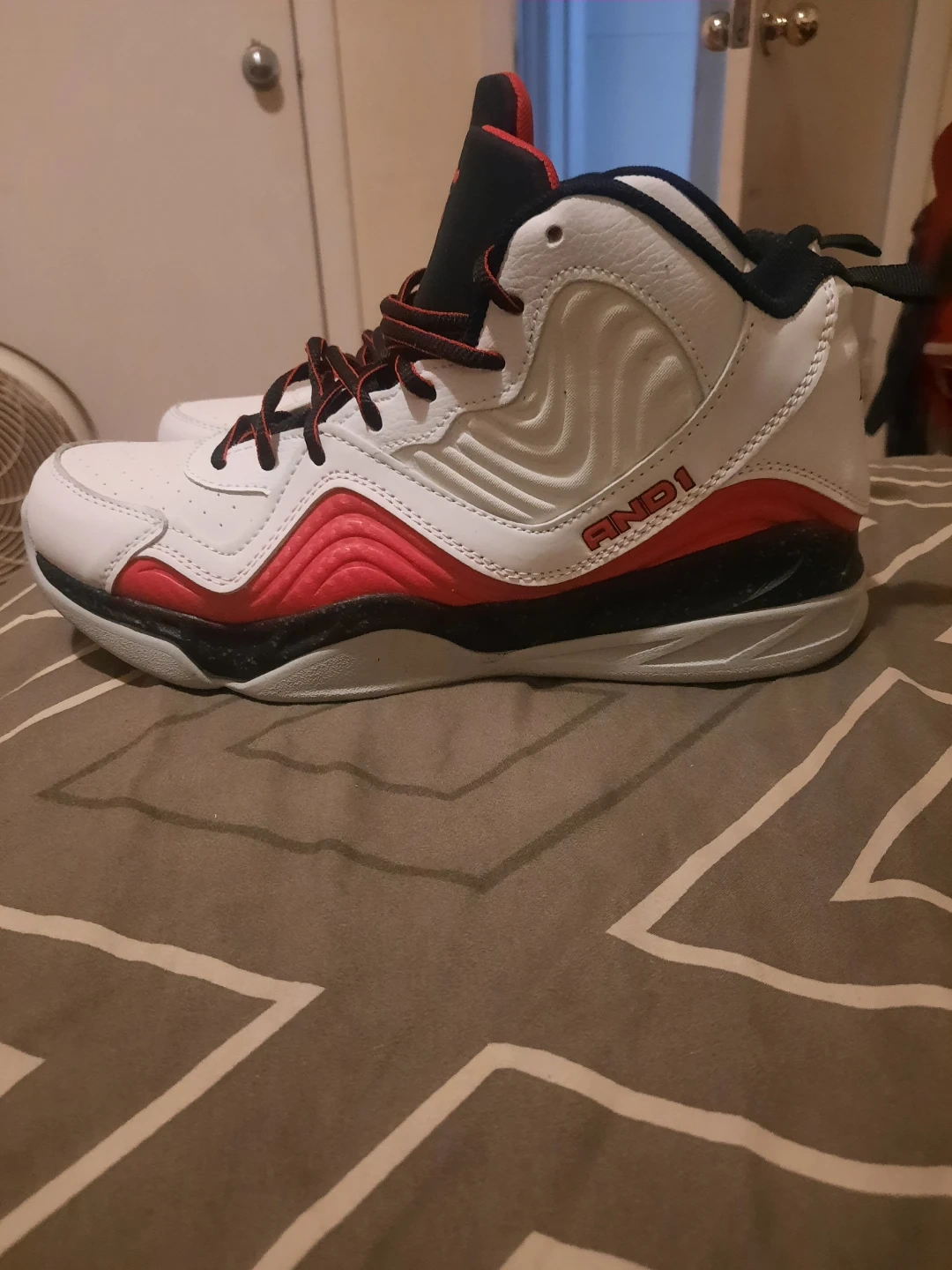 Selling a pair of AND1 basketball shoes. They're in good condition and feature a white, red, and black colour scheme. Perfect for playing ball or just casual wear!