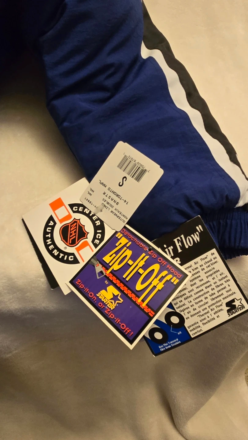 34Selling a Toronto Maple Leafs jacket by Starter! Brand new, warm and cosy for the winter. It's a size small and features a zip-off hood. Perfect for showing your team spirit!