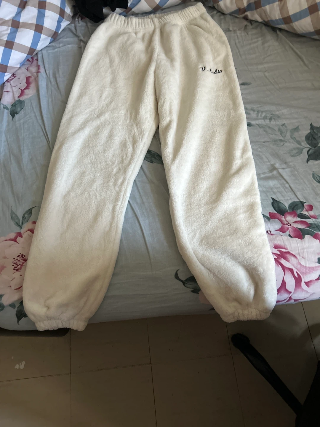 Super comfy cream-coloured fuzzy lounge pants! They're a size medium and in great condition. Perfect for cozy nights in or just relaxing around the house