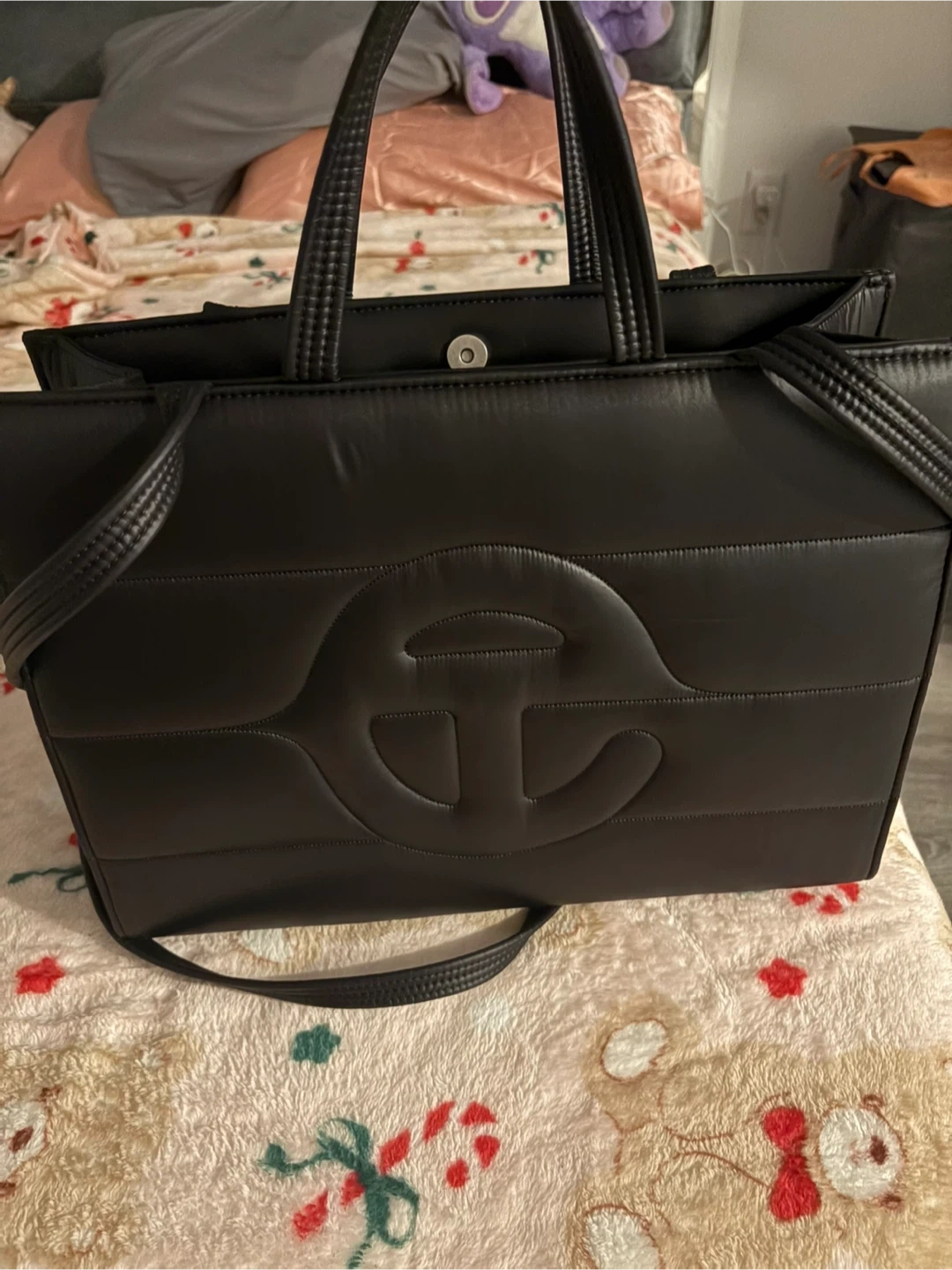 Selling a Telfar black padded large bag. It's in great condition and ready for a new home! This stylish bag is perfect for everyday use and adds a touch of sophistication to any outfit. The padded design makes it comfortable to carry, and the medium size is ideal for holding all your essentials