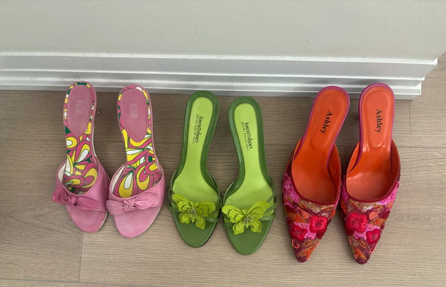 Selling a few pairs of heels that are in great shape! There's a pink pair and a green pair from Town Shoes, as well as an orange/red pair from Ashley. Perfect for adding a pop of colour to your outfit