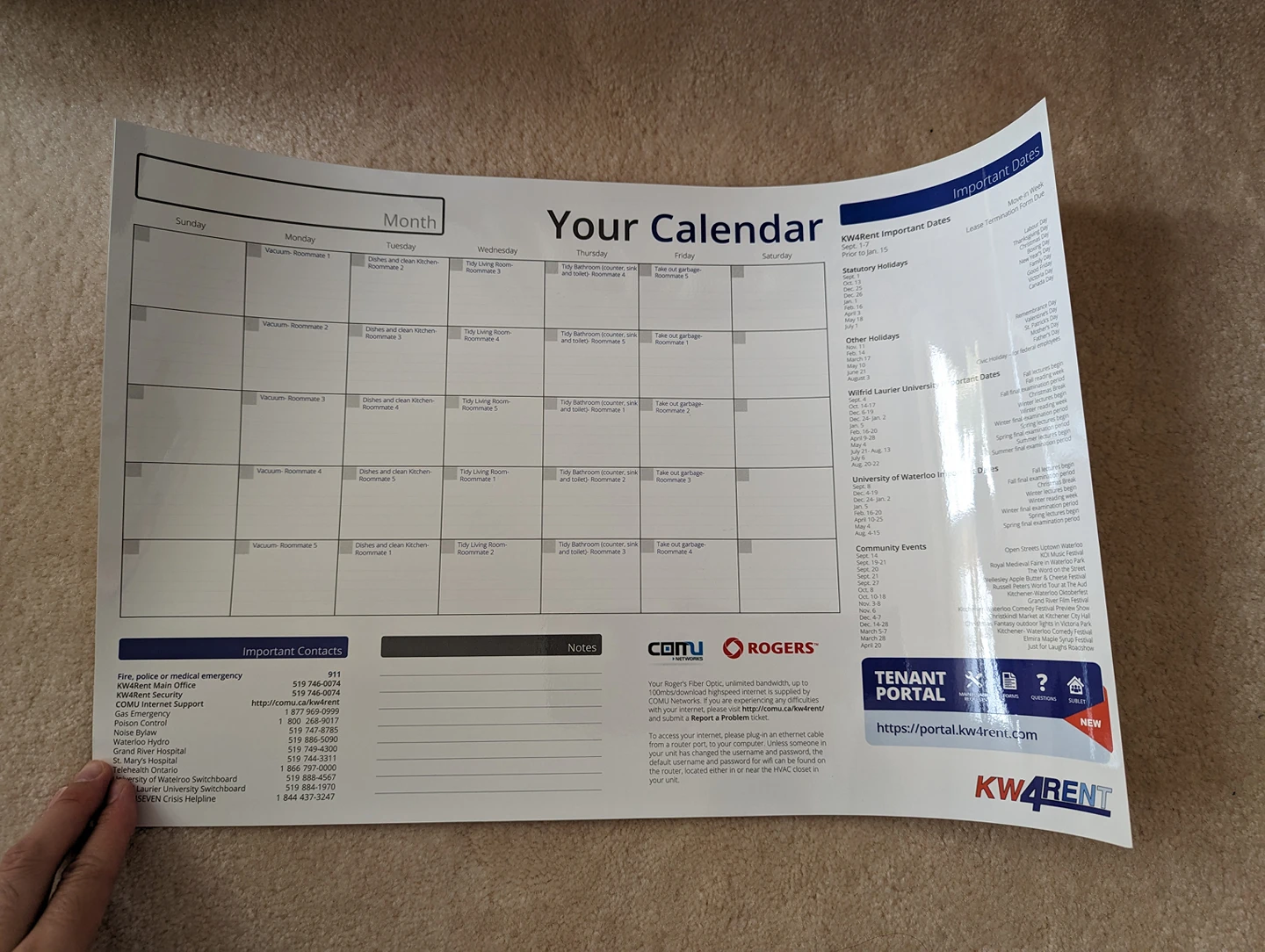 Free unused calendar planner, you can use whiteboard marker and whiteboard eraser on it.