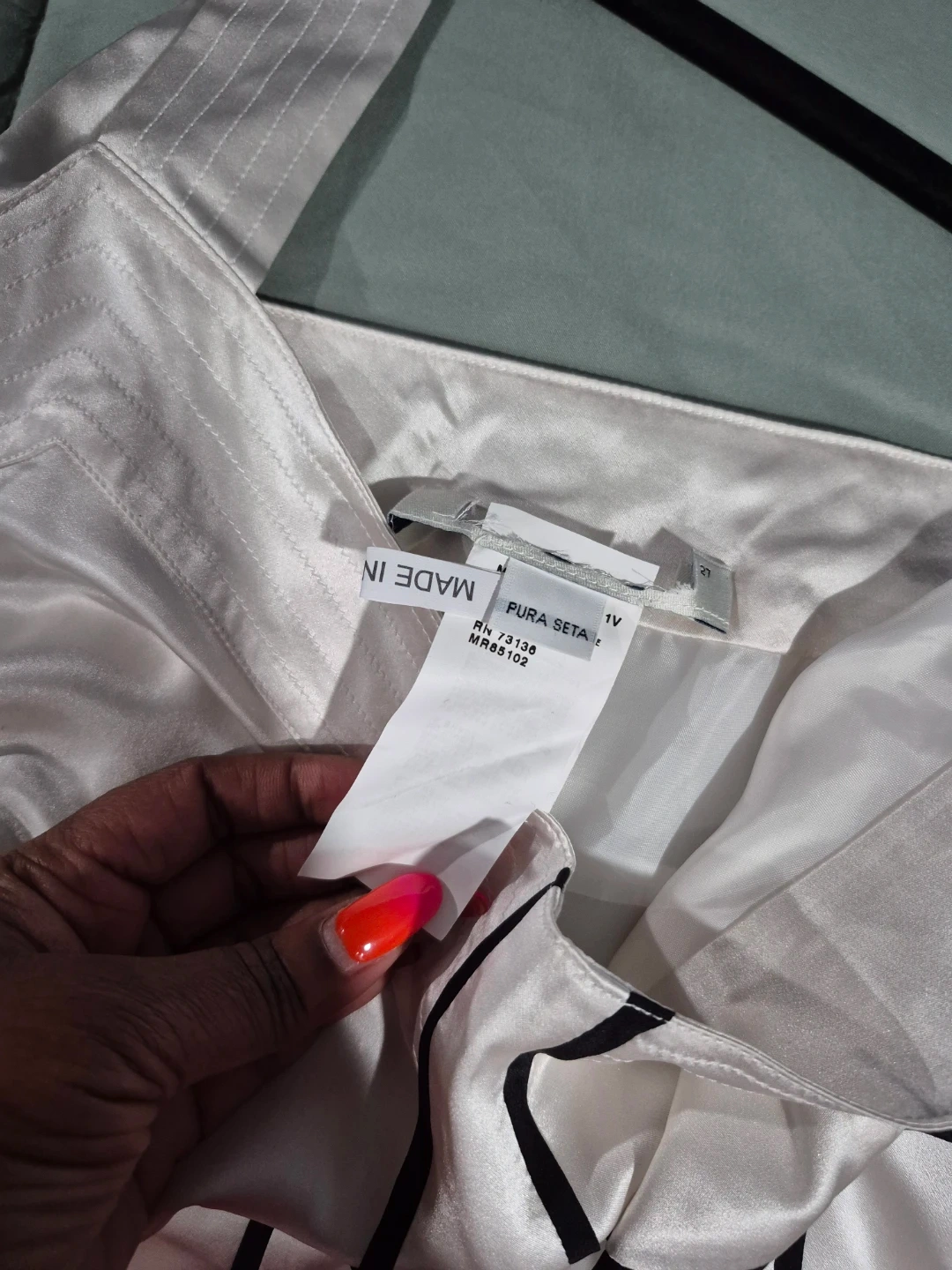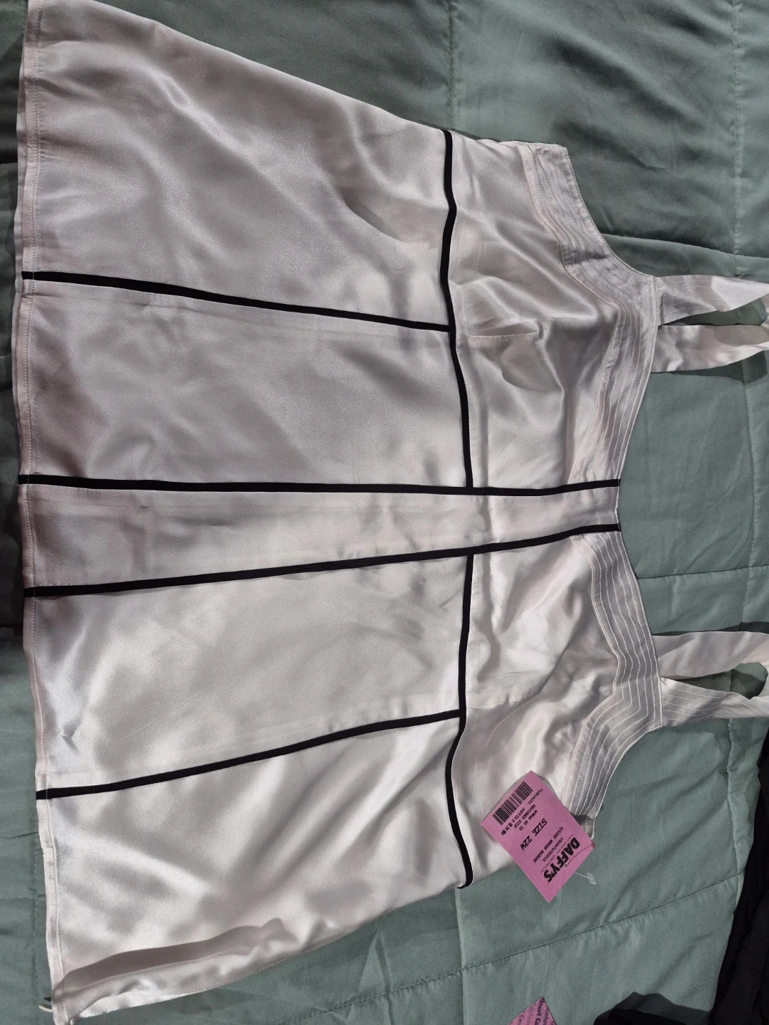 The Marina Rinaldi Silk Camisole in size 22W is a stylish and elegant top perfect for casual occasions during the summer and spring seasons. Made from luxurious silk material, this sleeveless blouse features a relaxed fit and a classic camisole style. The white color adds a chic touch to the outfit, making it versatile and easy to pair with different bottoms for a trendy look. Perfect for plus-sized women looking for a comfortable and chic clothing option.