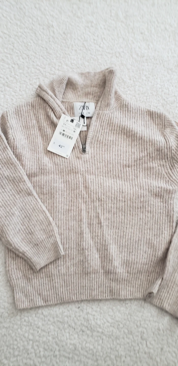 13Selling a brand new Zara knit sweater with a half-zip. It still has the tags on it! The sweater is a lovely neutral colour and features a ribbed knit texture. Two sizes, each for 35 Kids, 8 to 9 or 9 to 10