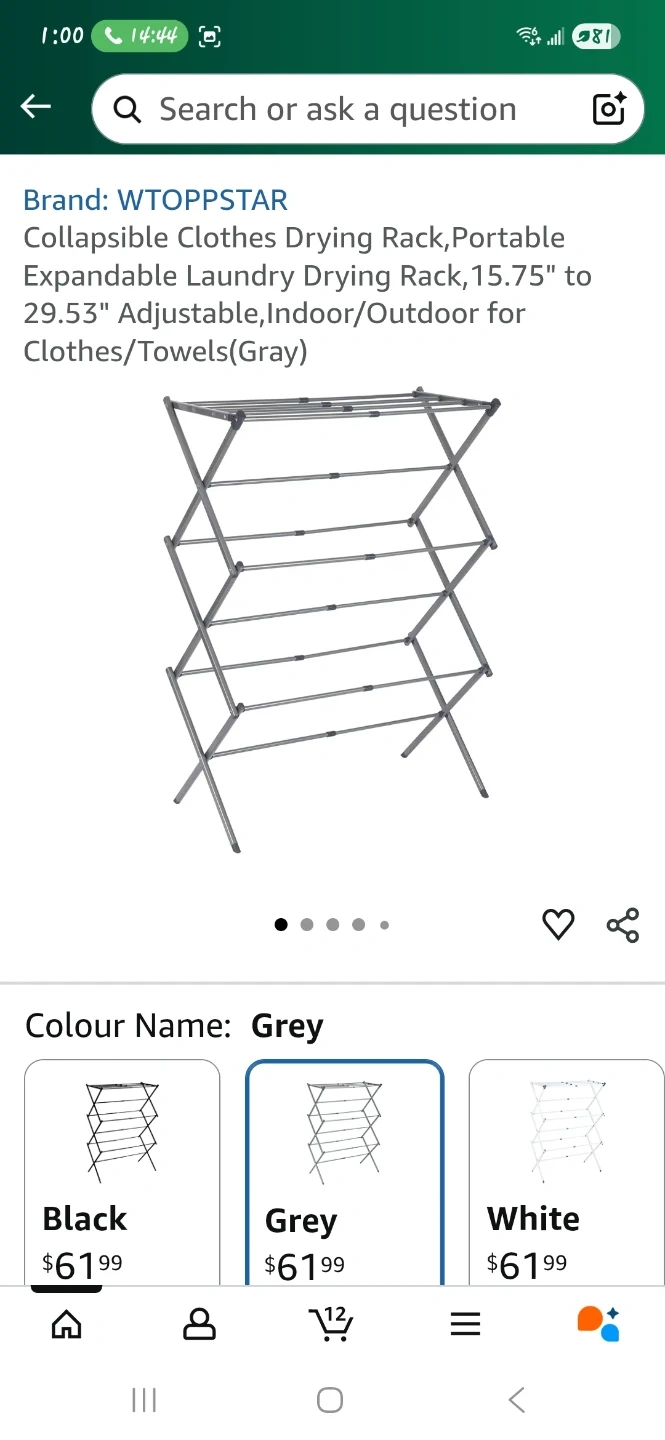 I'm selling a WTOPPSTAR collapsible clothes drying rack in grey! It's a portable and expandable laundry drying rack, adjustable from 15.75" to 29.53". Perfect for indoor or outdoor use for clothes and towels