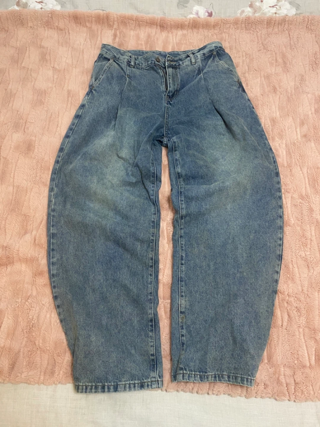 it has a fold stitch by the waist to create a more baggy fit around the legs. The fit is super nice and it stacks really well since the leg opening is smaller than the leg width. The length is perfect (see photo of me wearing it, Im 5’8)