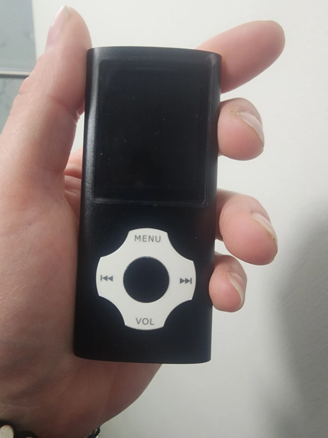 MYMAHDI MP3 player in black. It features a TF card slot, on/off switch, microphone, and USB port. Great for listening to music on the go! Must pick up
