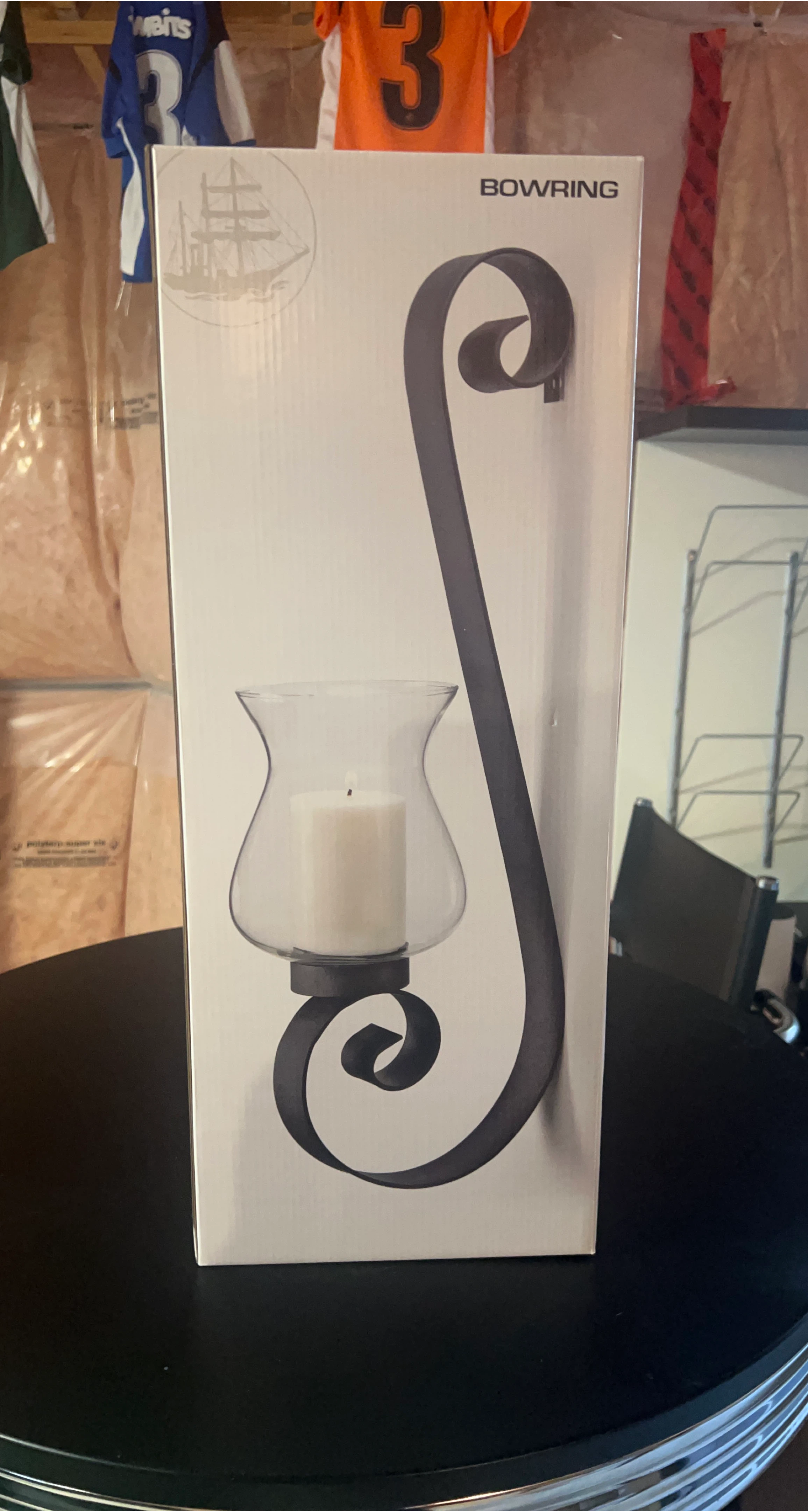 Selling a brand new Bowring 22" Wall Sconce, still in its original box! This wall sconce adds a touch of style to any decor and is perfect for use over a buffet, in entrances, or anywhere you want to create a warm atmosphere. It holds a 3" diameter pillar candle (candle not included).