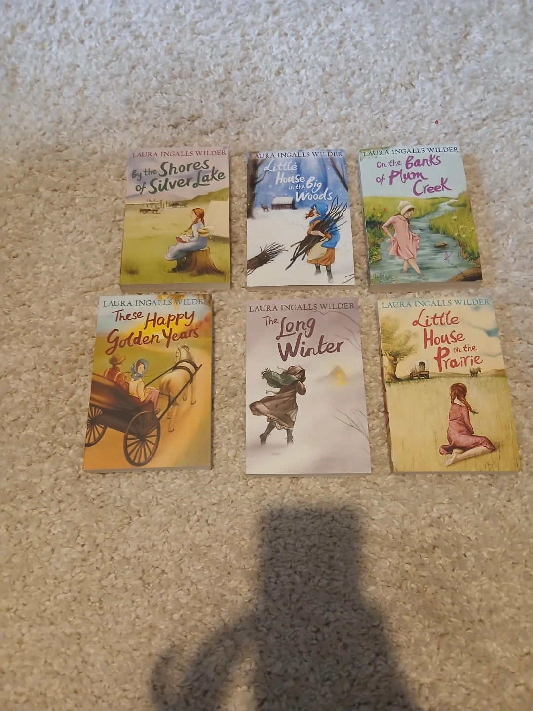 Selling a set of six "Little House on the Prairie" books by Laura Ingalls Wilder. Titles include: By the Shores of Silver Lake, Little House in the Big Woods, On the Banks of Plum Creek, These Happy Golden Years, The Long Winter, and Little House on the Prairie