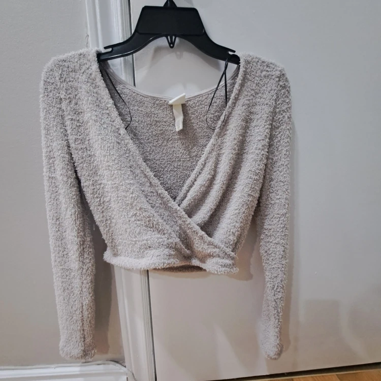 Selling cozy H&M long sleeve crop tops each for $5. If you buy both, it will be $8. They are perfect for layering or wearing on its own! Both of them are inn great condition as I've only worn each one once. It is a soft, fuzzy material with a flattering cross-front design.