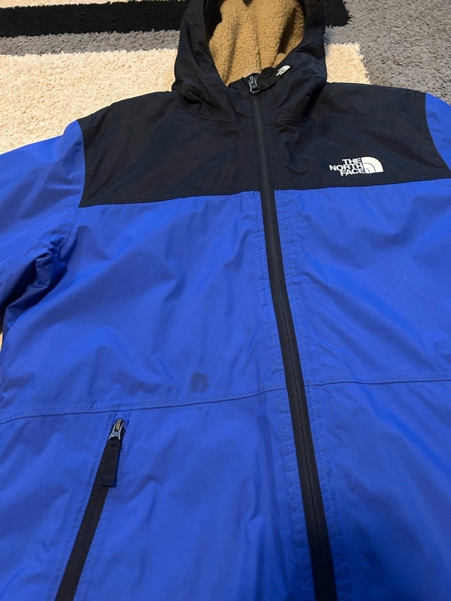 Boys North Face Jacket in very good condition, only thing is that there is a stain on the front of the coat. Boys XL