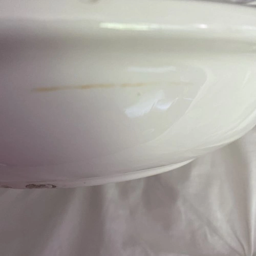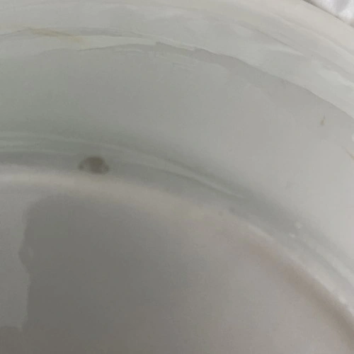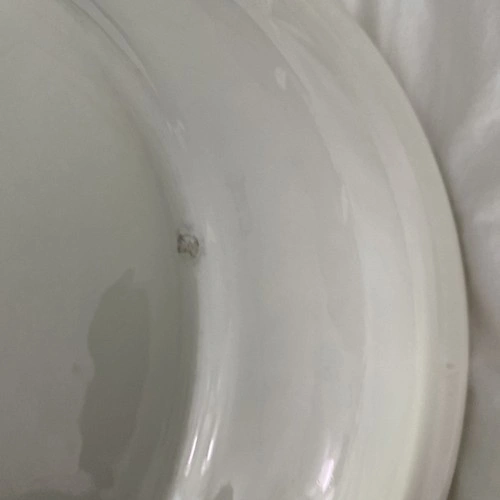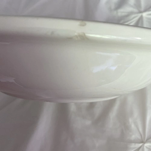 Crafted with care, this elegant 11” pasta bowl by HiMARK is a must-have for any kitchen. With its glossy white finish and classic round shape, it brings a touch of Italian sophistication to your dining table. Made in Italy, the bowl is a single piece that embodies the quality and craftsmanship of the late 90’s to early 2000’s era. This ceramic piece is not only practical for all occasions, but it also serves as a decorative element, stackable with other similarly sized bowls. It weighs a sturdy .86 kg and stands 3 inches tall, perfect for holding your favourite pasta dishes. The HiMARK pasta bowl is printed with a backstamp verifying its authenticity and origin, adding a genuine Italian theme to your home collection. There is some wear on the piece - see pics. It remains in good shape and is a perfect addition to pasta night.