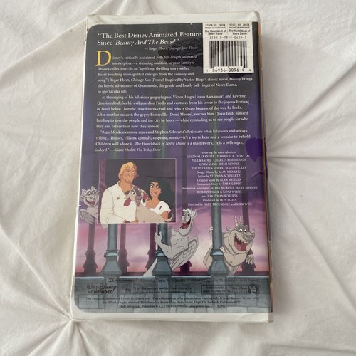 Rediscover the classic tale of romance and intrigue with "The Hunchback of Notre Dame" on VHS. This 1997 release brings to life the beloved story set against the stunning backdrop of medieval Paris. Ideal for collectors and enthusiasts of vintage media, this VHS tape is a nostalgic addition to any movie library.