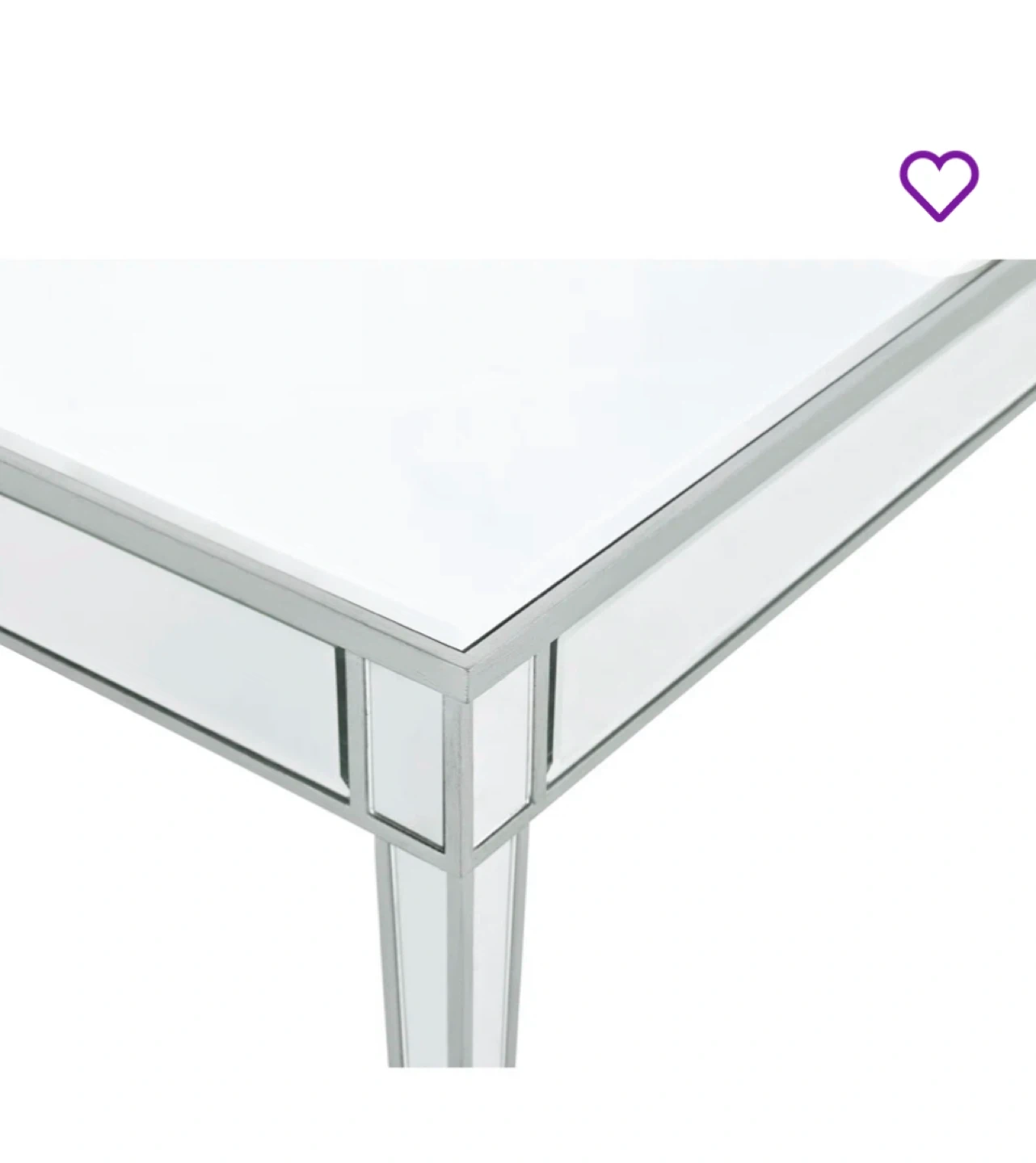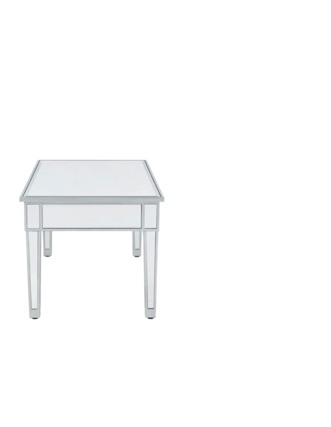 This mirrored coffee table features a sleek silver finish. It's a stylish piece that can add a touch of elegance to any living room. The table dimensions are approximately 40" x 20" x 18"