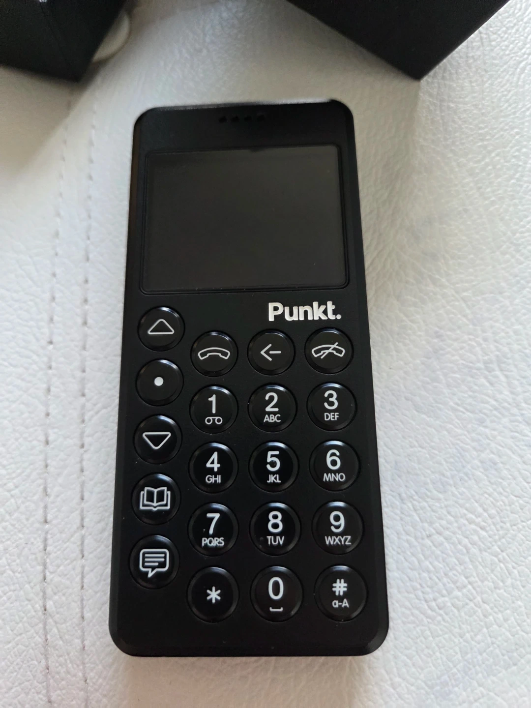 Selling a Punkt. MP02 minimalist mobile phone in black! It's designed for autonomy and focuses on voice calls and texting. Comes with the original box!