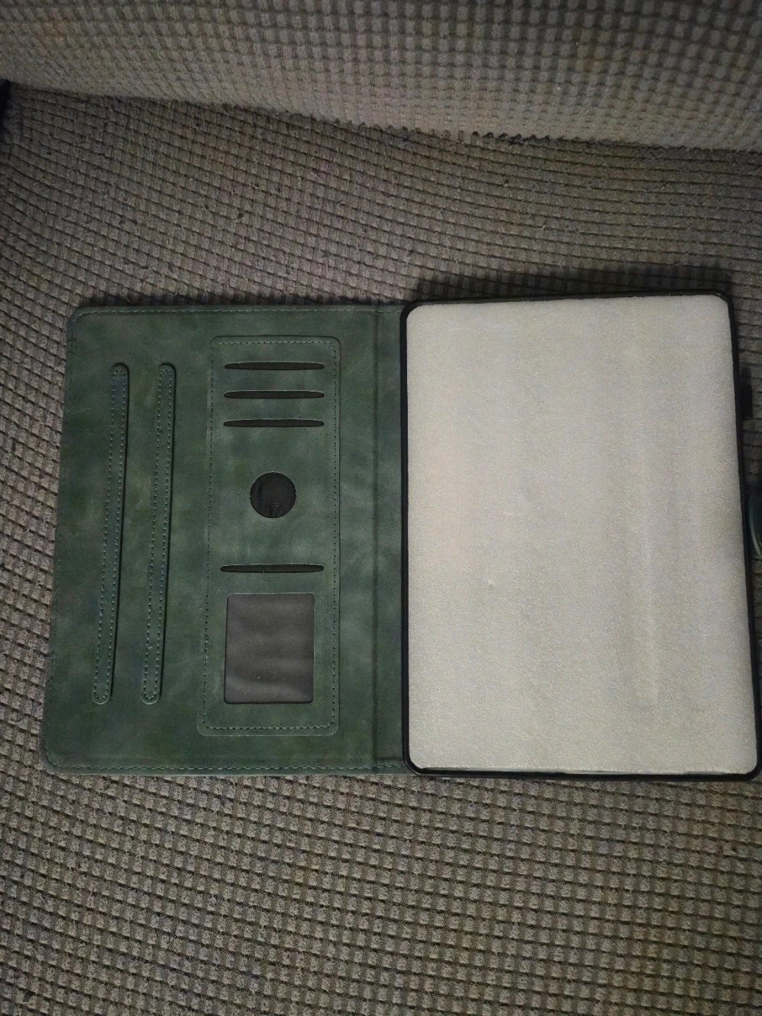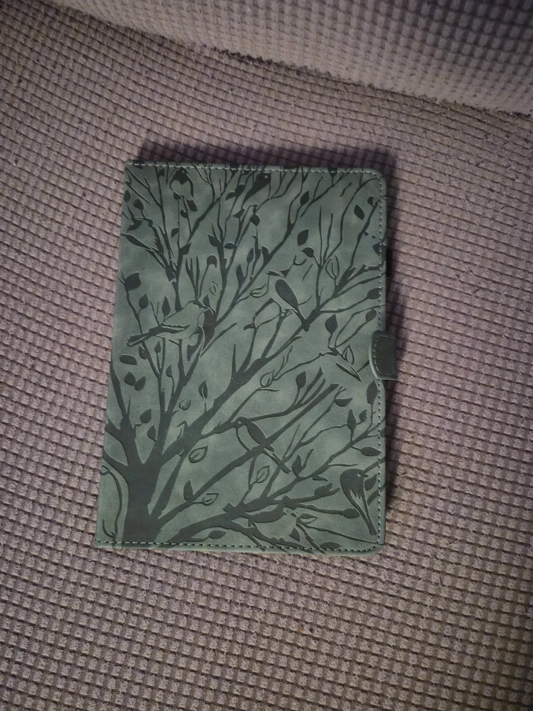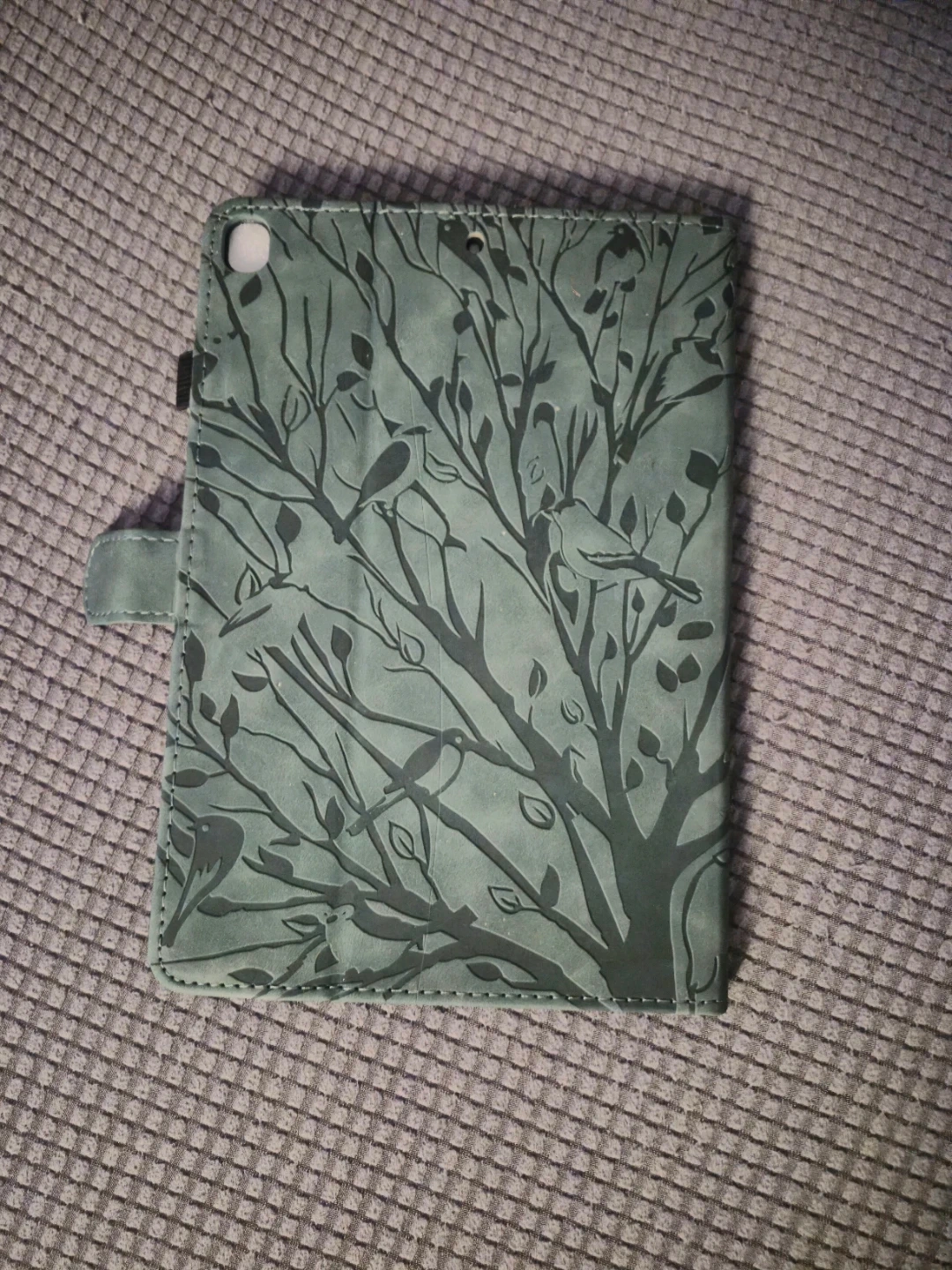 Selling a Medial pad T3 10 tablet case in a lovely green colour! It features a beautiful tree and bird design. It has slots for cards and a secure closure to keep your tablet safe and sound.