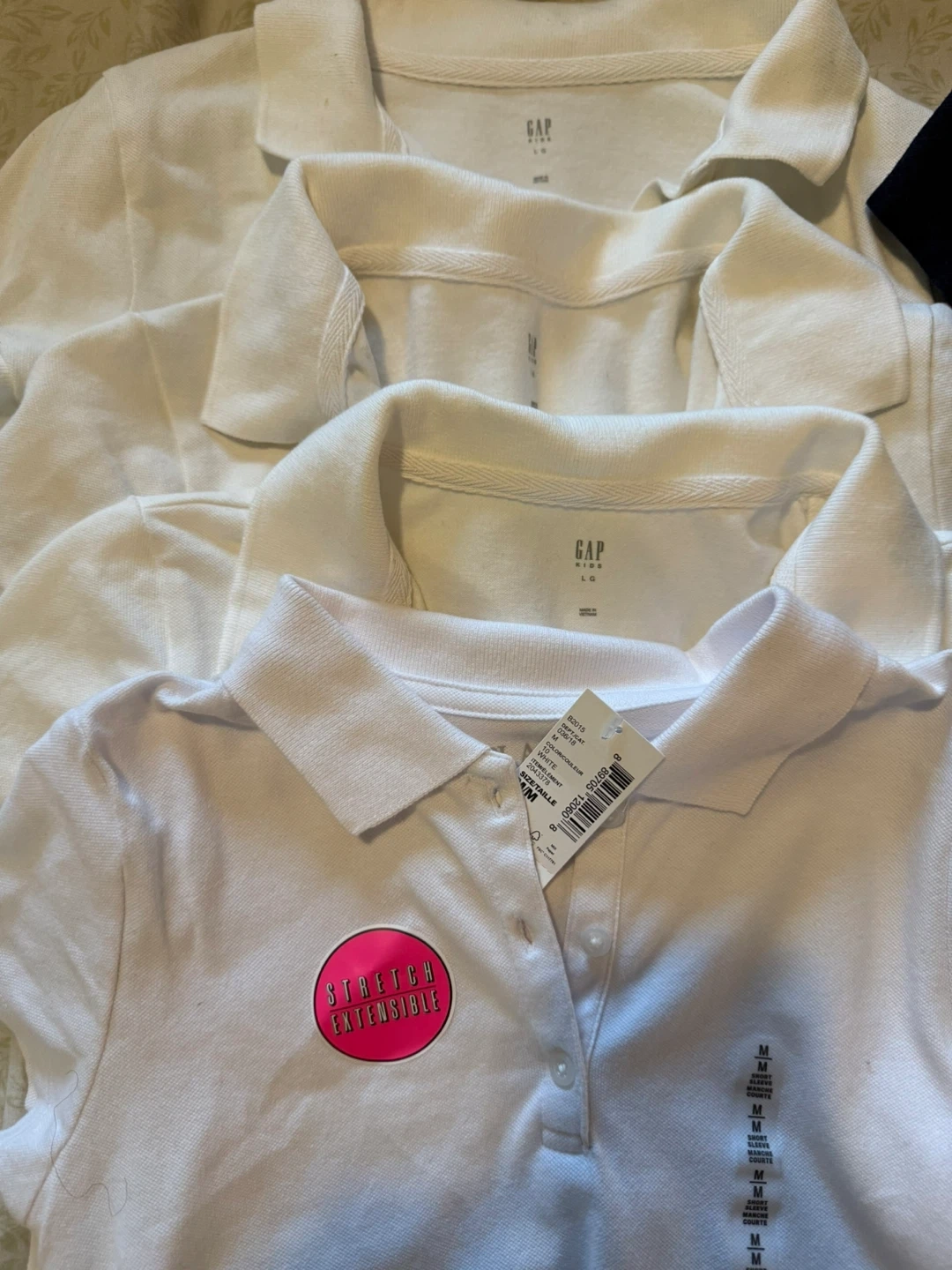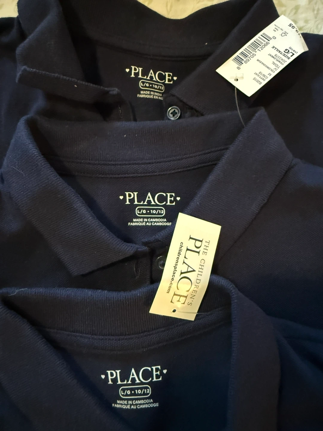 60I have a set of polo shirts for sale. There are navy blue shirts from The Children's Place and white shirts from Gap. All are size L (10/12). They are in great condition and ready for a new home!
