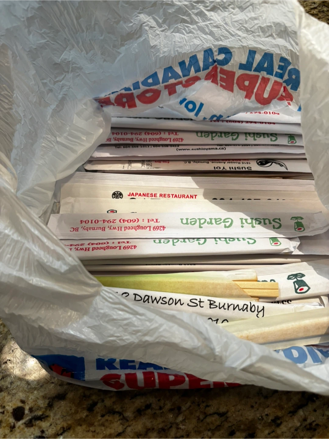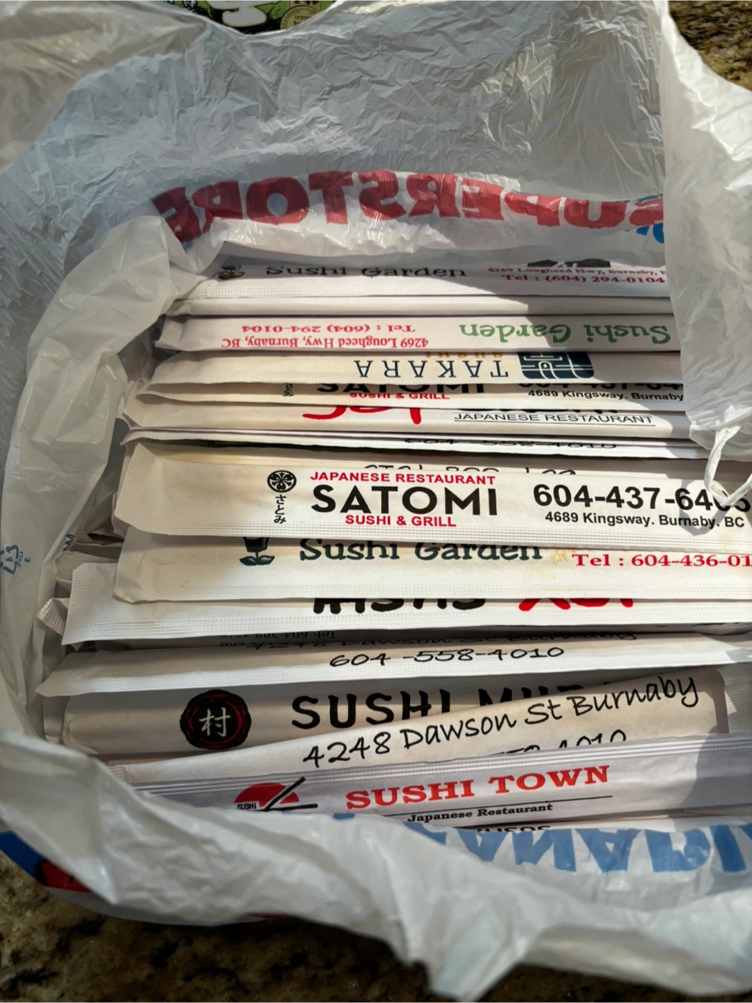 There are bunch of new disposable chopsticks. All new and there should be more than 100 of them.