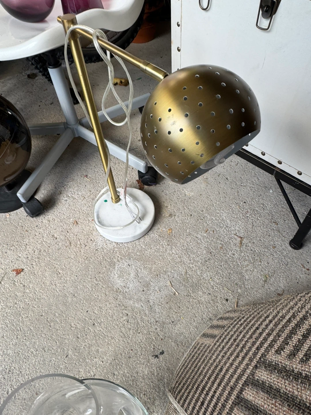 Buy & SellGold Tone Globe Table LampGold Tone Globe Table Lamp$18Selling a stylish gold-tone globe table lamp with a white marble base. It would look great in any room!ConditionGood0 chats·0 favorites·20 viewsSELLERverifiedNmkCentral Erin Mills914 reviewsWHERE TO MEETCheck Location