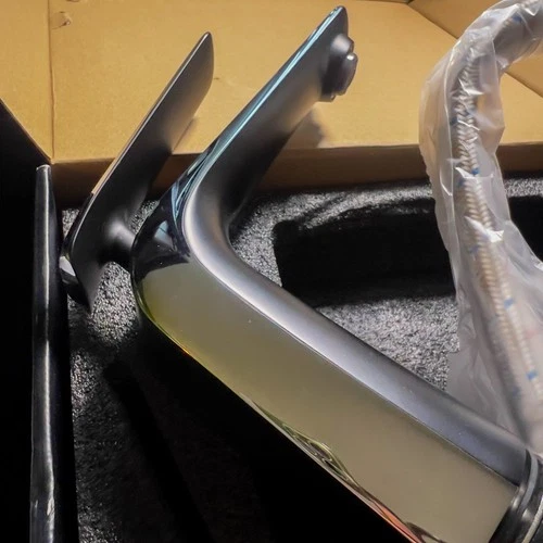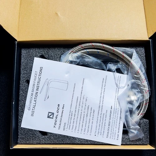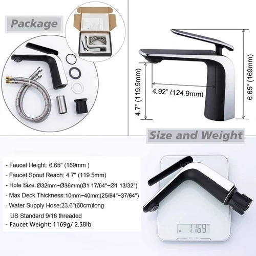 Selling a brand new in open box TOCALOCA Single Hole Bathroom Vessel Sink Faucet, Premium Brass Wash Basin Faucet with Single Handle 1 Hole, Vanity Lavatory Tap Mixer, Contemporary Matte Black and Polished Chrome Finish.
