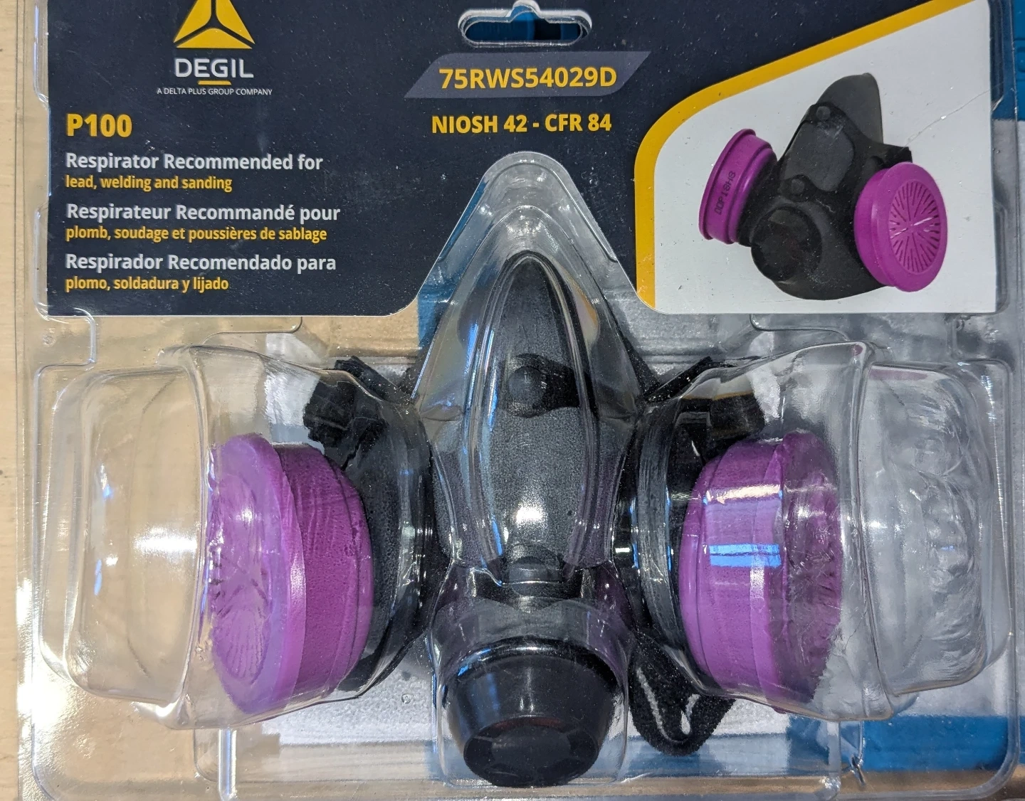 Selling a brand new DEGIL P100 respirator, still in its original packaging! It's recommended for protection during lead work, welding, and sanding. Perfect for any DIY projects or professional use where respiratory protection is needed