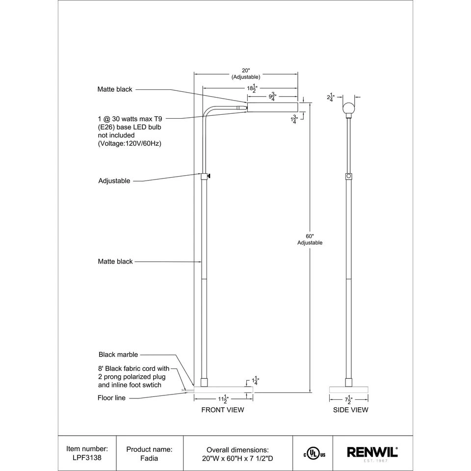 Renwil Fadia Floor Lamp — Like New, black, sofa lamp