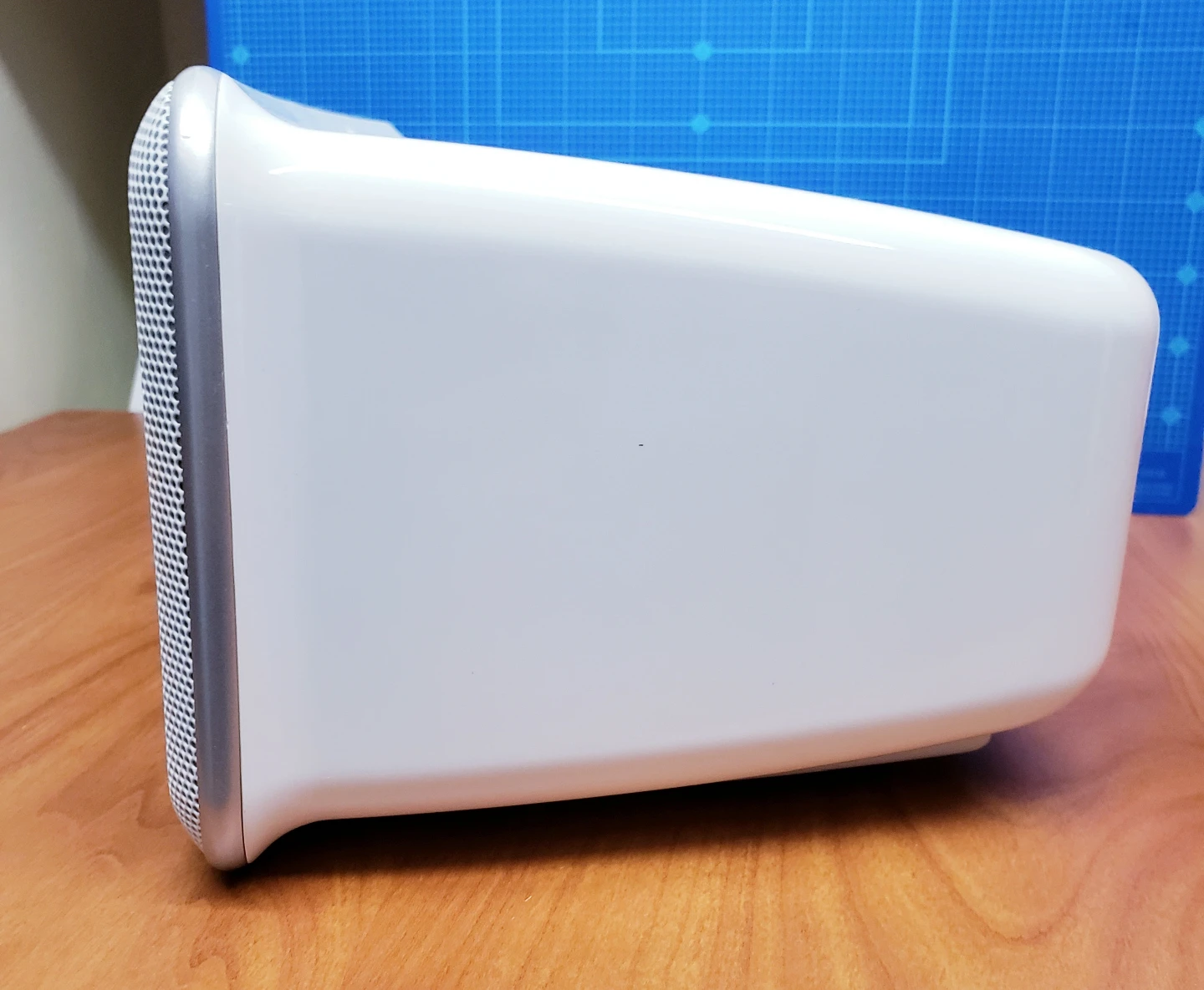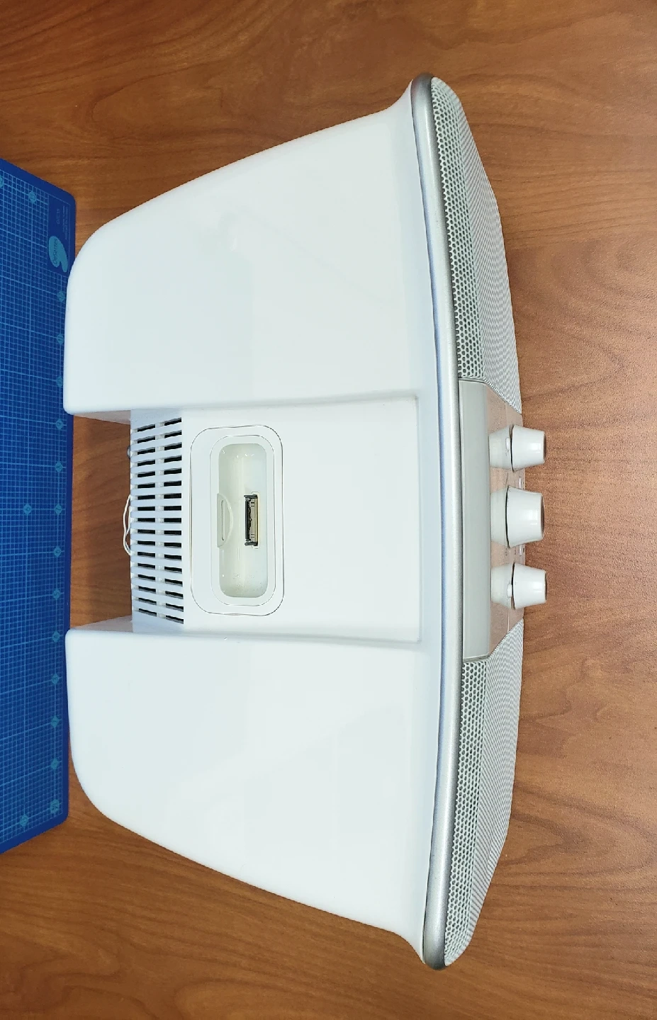Minor cosmetic wear: left speaker grill has a very minor dent as shown in photo, display screen has a small blemish that can be seen when unit is turned off at certain angle.