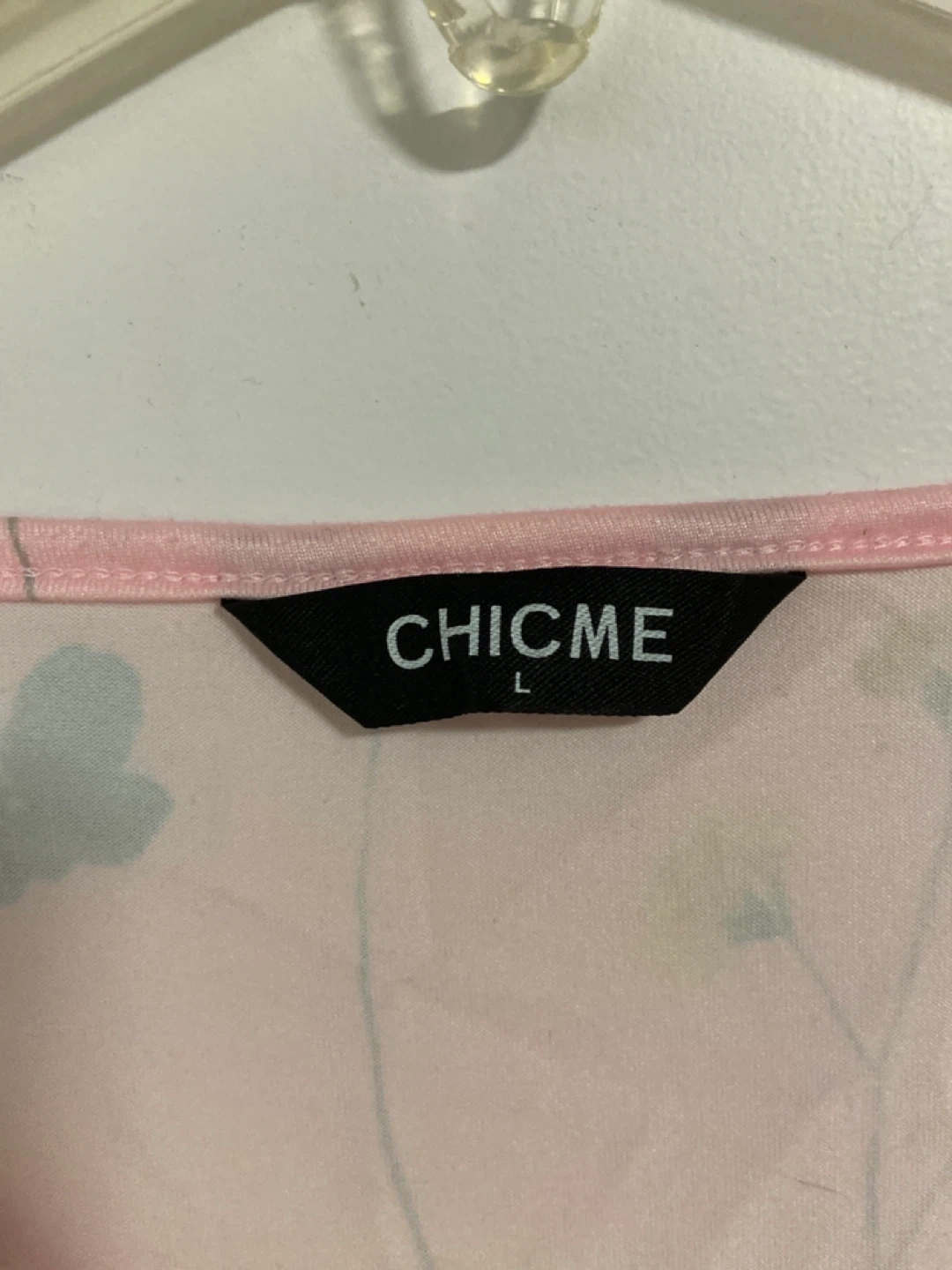Selling a ChicMe top in size large. It's a pretty pink colour with a floral print and lace detailing on the sleeves. In great condition!
