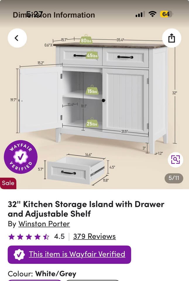 Dimensions: 32”W × 16”D × 32”H