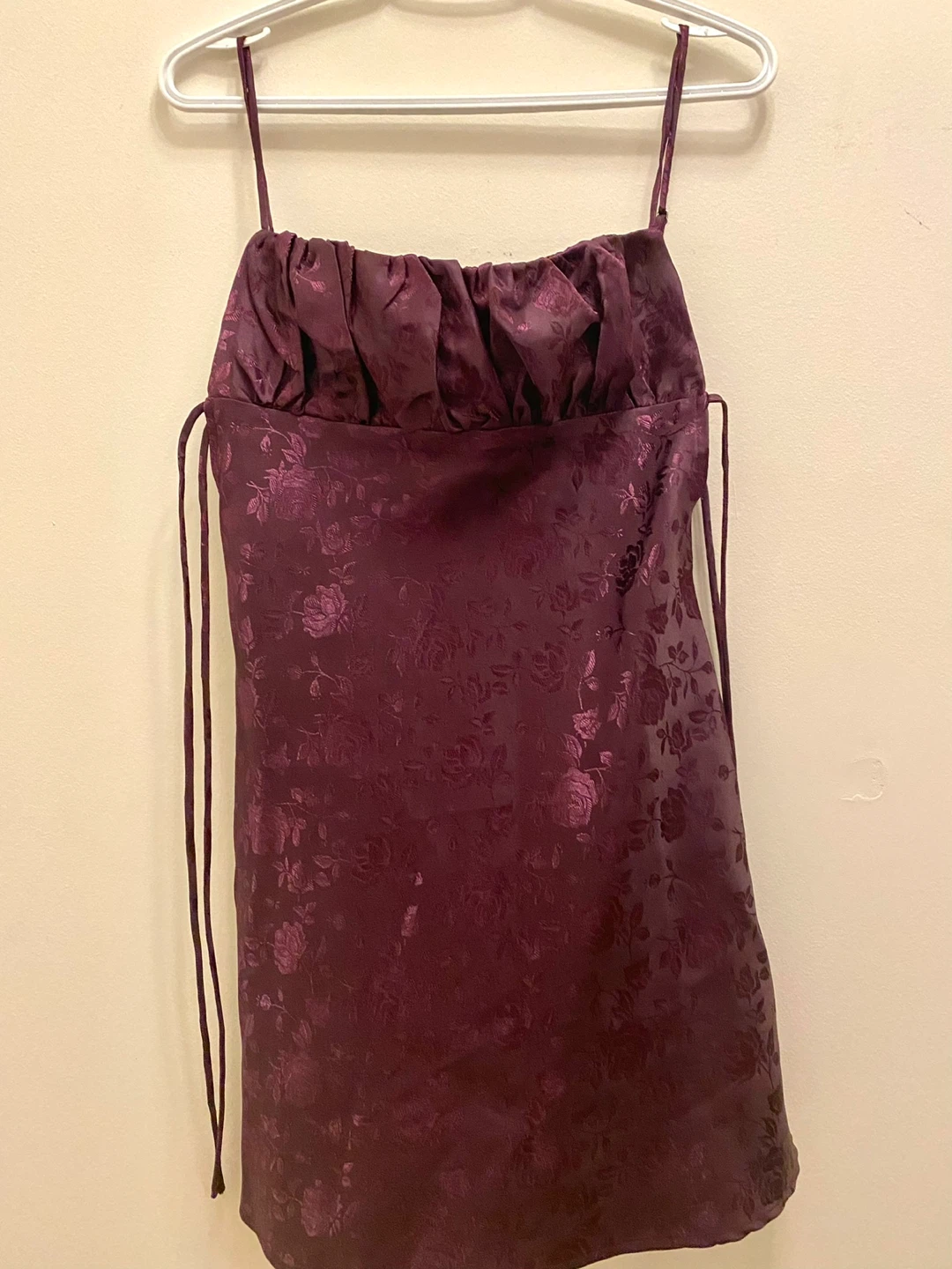 Selling a cute purple floral mini dress! It has a lovely pattern and a comfortable fit. Perfect for a night out or a special occasion. It's in great condition and ready for a new home