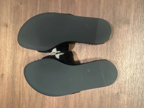 76Louis Vuitton Shearling Magnetic Mules Black Leather TrimMaterial: Crafted from plush shearling, providing a soft and cozy feel. Design: Featuring bold LV initials and monogram flowers, typically in a contrasting color to the shearling. Style: Designed as a flat mule, offering a comfortable and chic footwear option suitable for both indoor lounging and casual outings. Original Price $1400, never worn, comes with two dust bags, & box. (Some photos includes staging with a full look, separate items will be listed in my closet.)