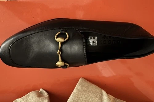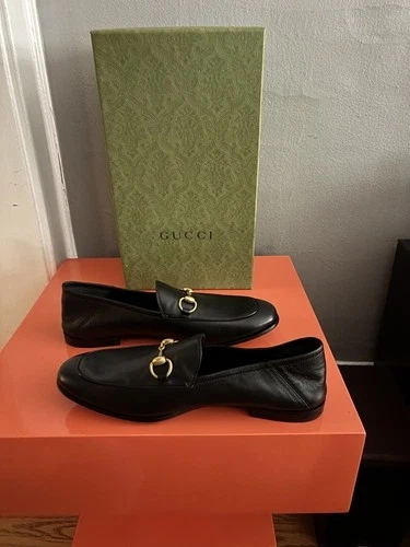 76Gucci Brixton Loafers • Black Leather • Horsebit Accent • Round-Toes • Includes Dust Bag, Box