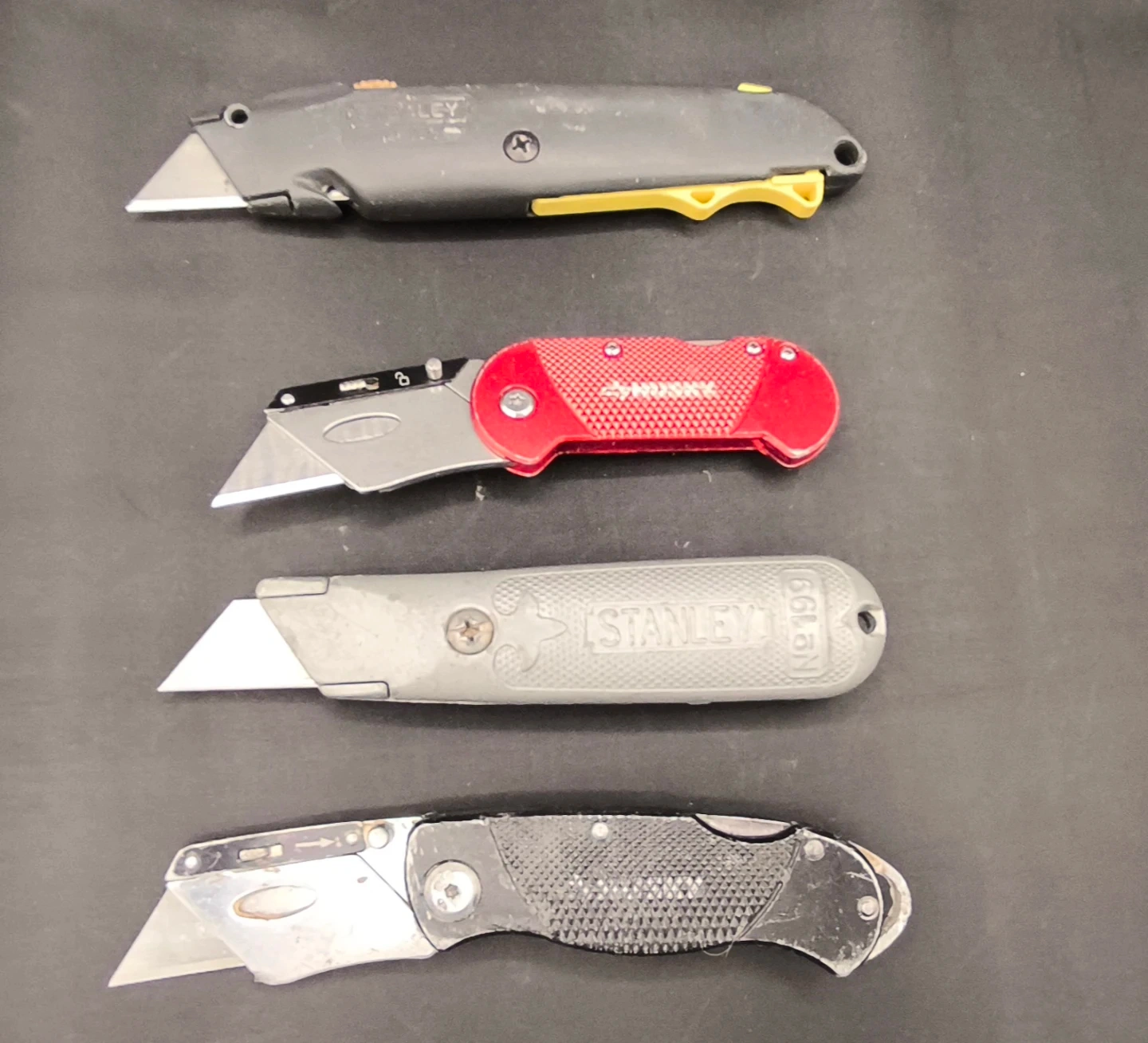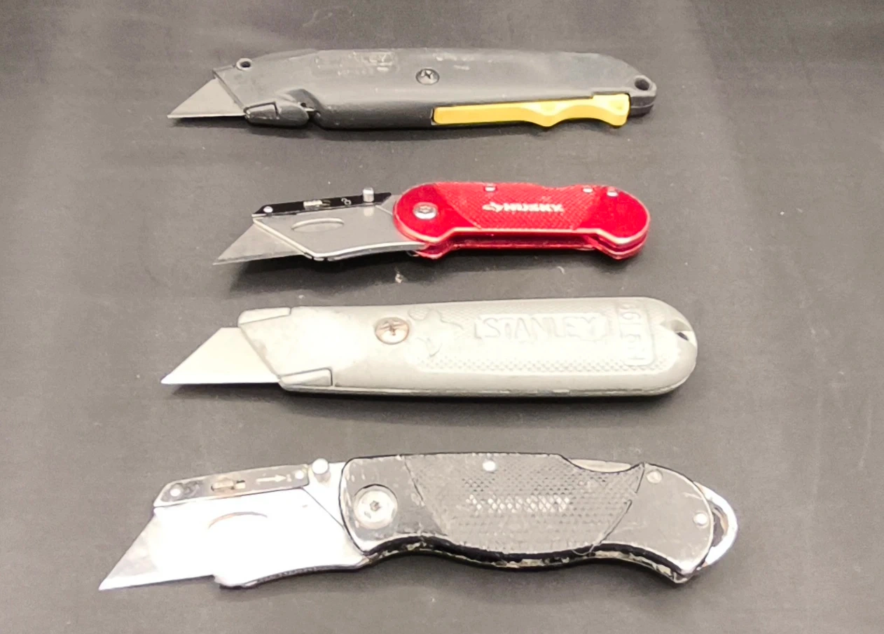 All knives are inspected, cleaned and in good working condition. Blades are sharp and ready to use. Perfect for construction, drywall, flooring, moving, packaging, DIY and shop use.