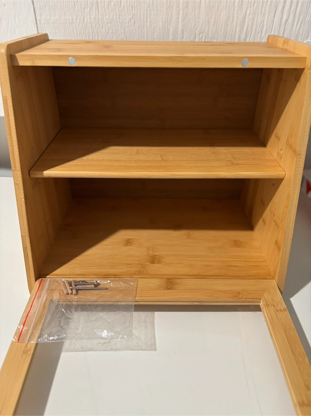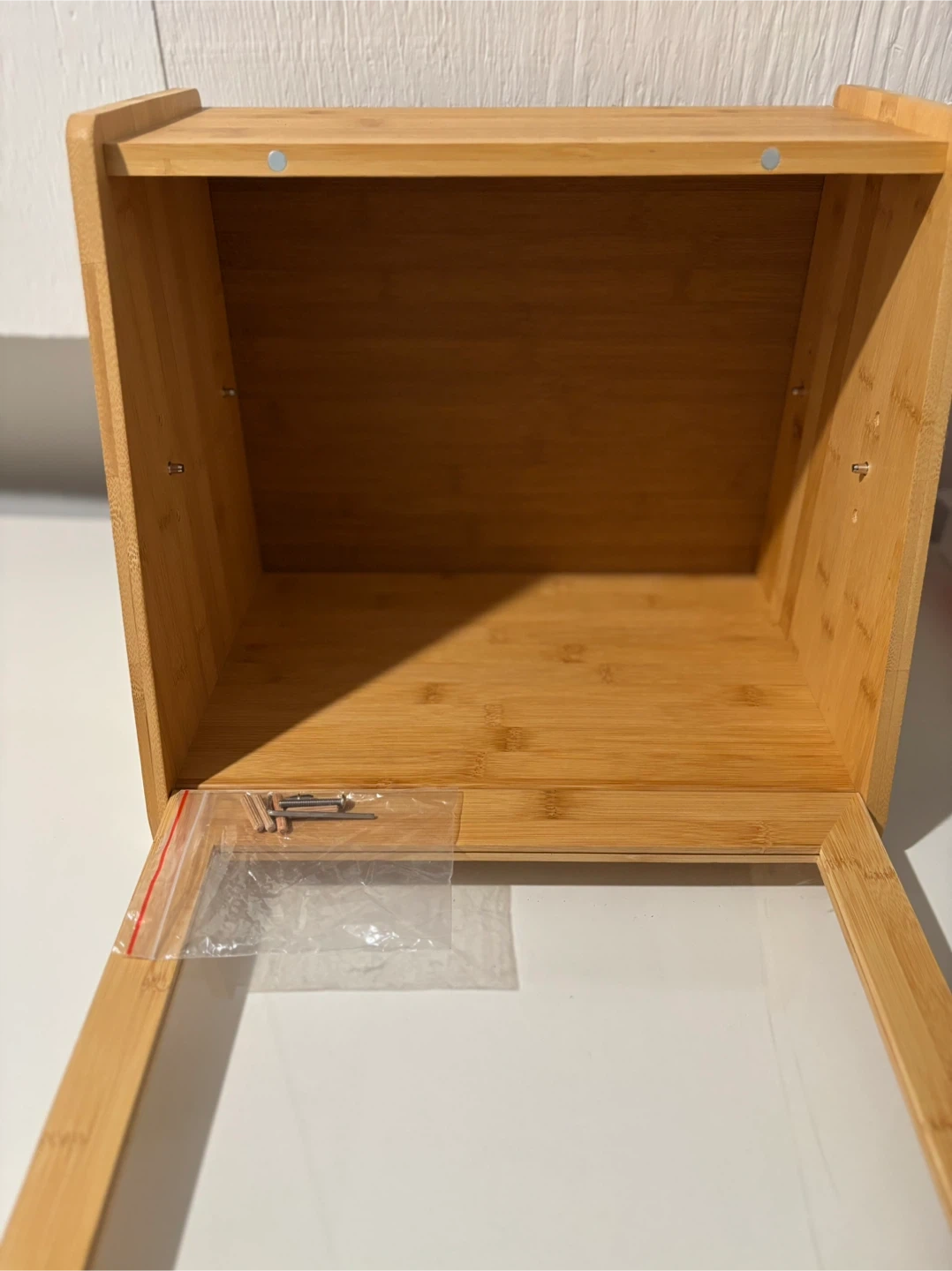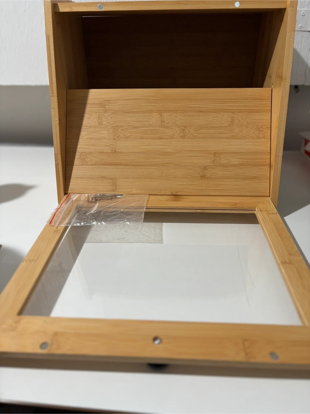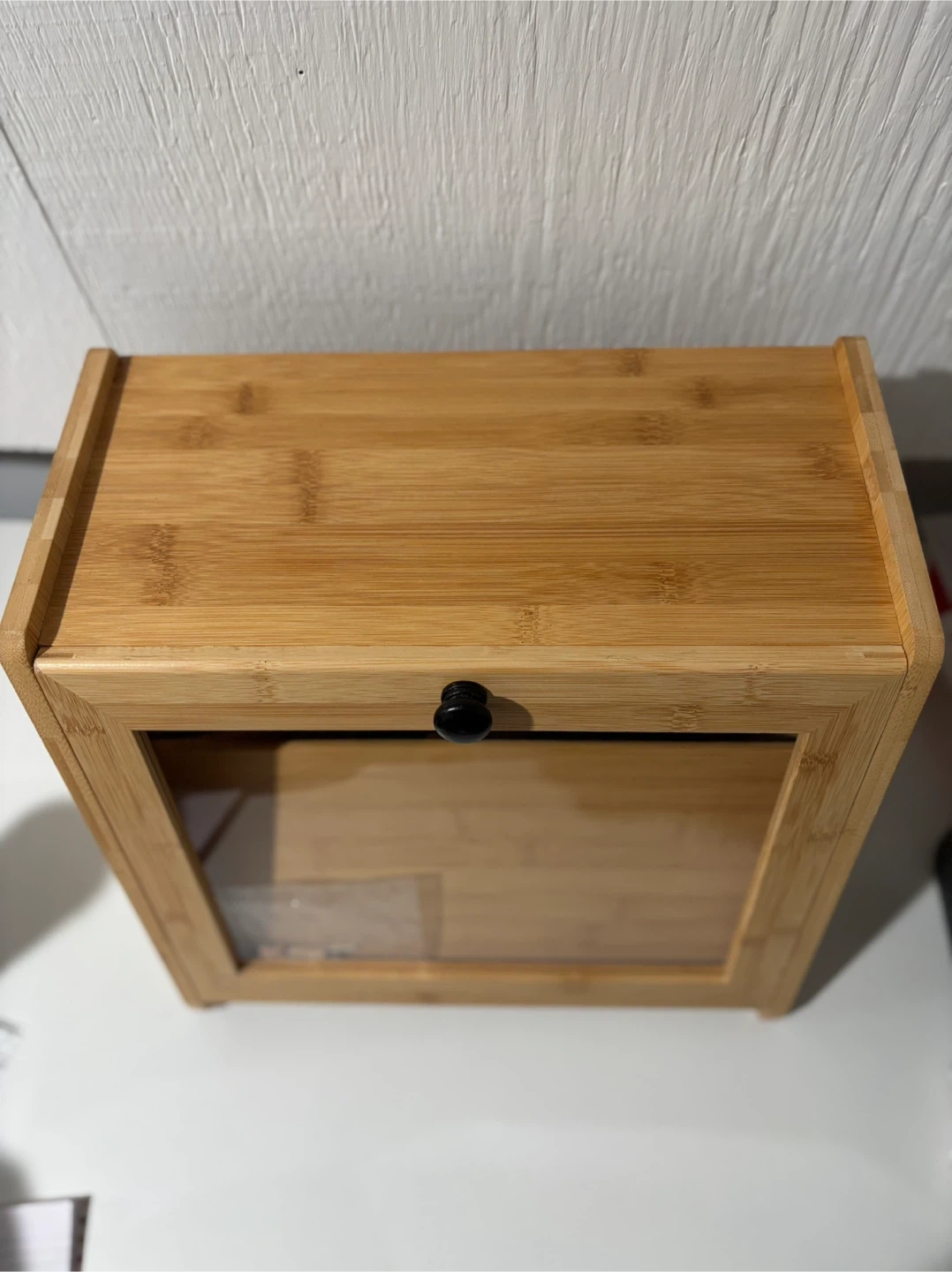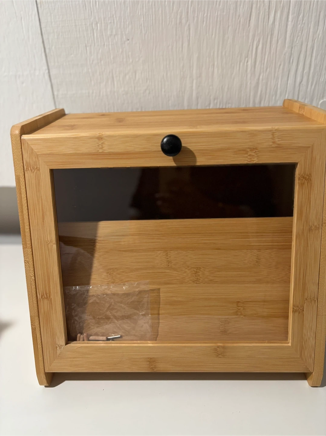 I'm selling a Bread Box, Large Bread Storage with Window, natural colour. It's brand new and ready to keep your baked goods fresh. It also includes the hardware.