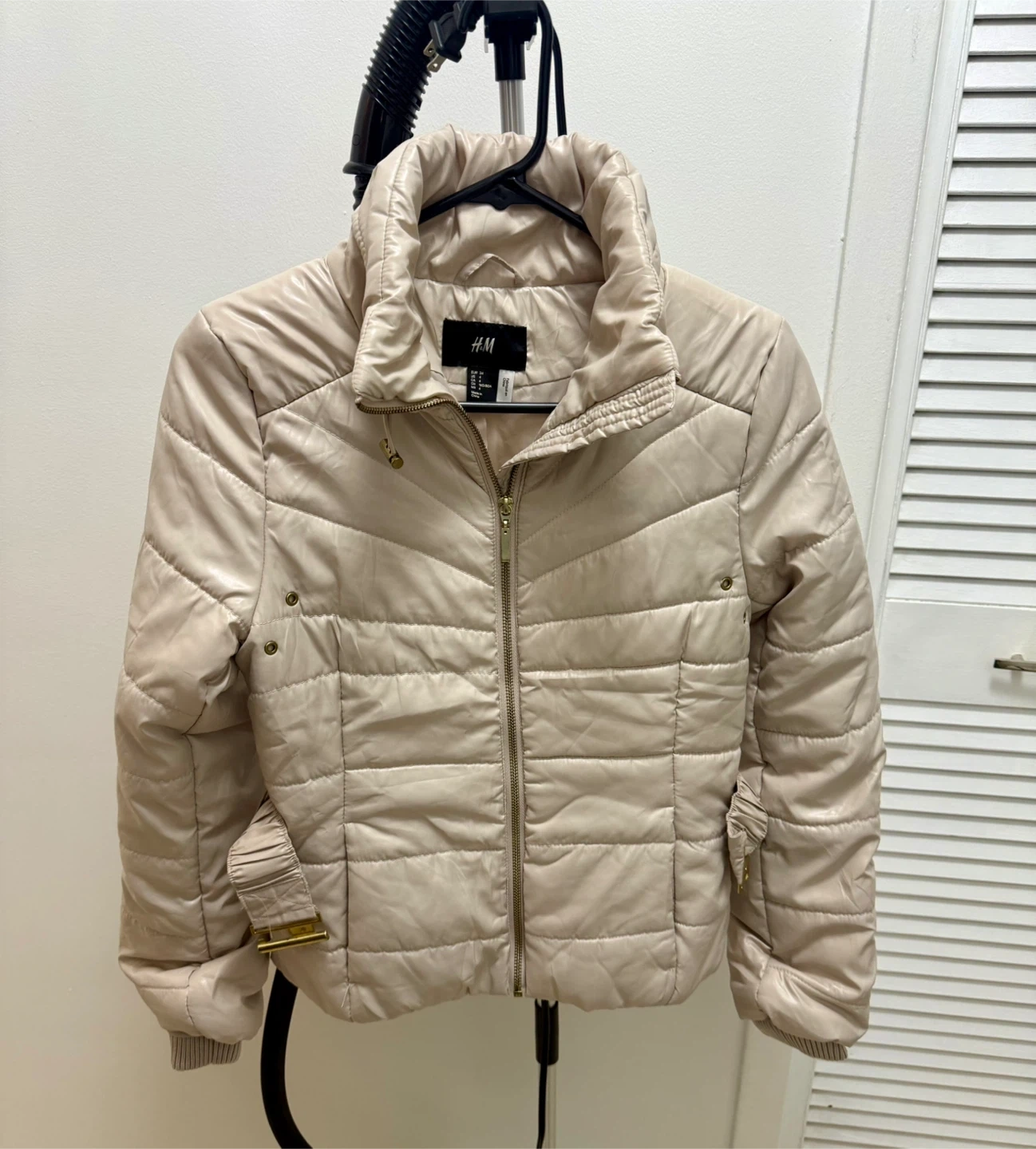 A stylish and comfortable padded jacket from H&M! This jacket is a size 4 and features a quilted design. Perfect for adding a touch of warmth and style to your wardrobe. Gently worn.